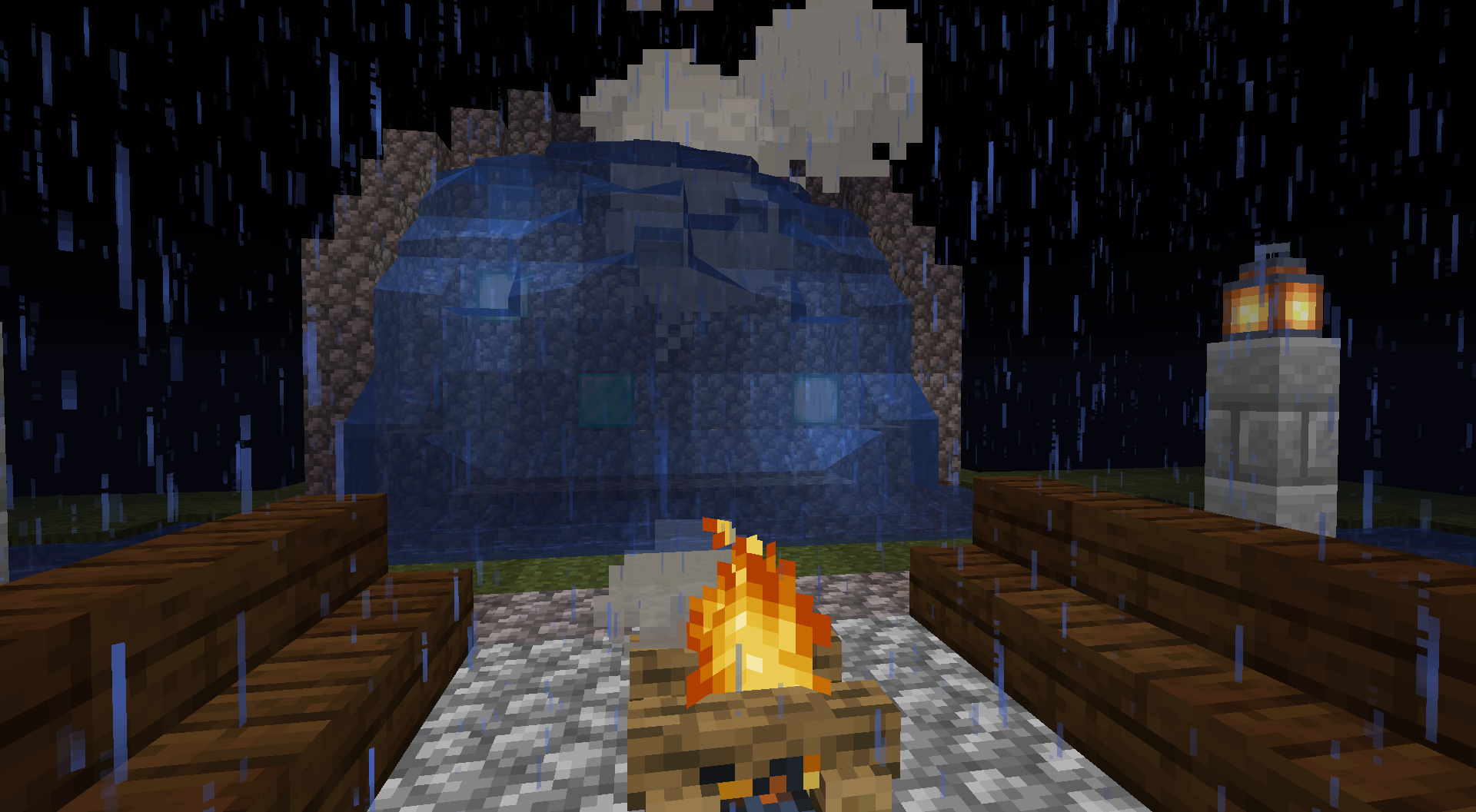After Placing a campfire in front of a waterfall I made, The Smoke graphics appear to be behind the water even though I am standing in front of the campfire.