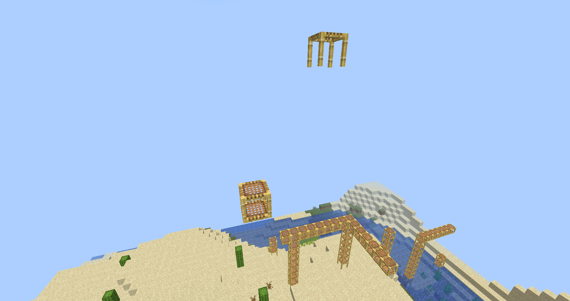 You can make a floating scaffold block that doesn't need any blocks touching it, and by right clicking on it with other scaffold blocks you can move it around where ever you want.