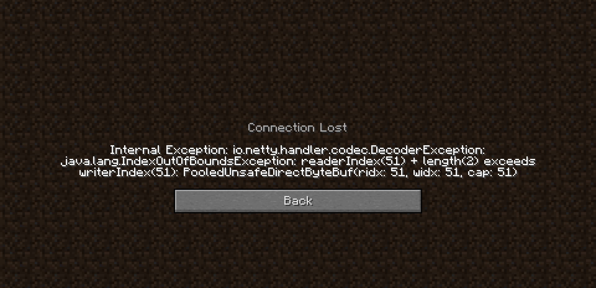 Internal Exception: io.netty.handler.codec.DecoderException:java.lang.IndexOutOfBoundsException: readerIndex(51) + lenght(2) exceeds writerIndex(51): PooledUnsafeDirectlyByteBuf(ridx: 51, widx: 51, cap: 51)