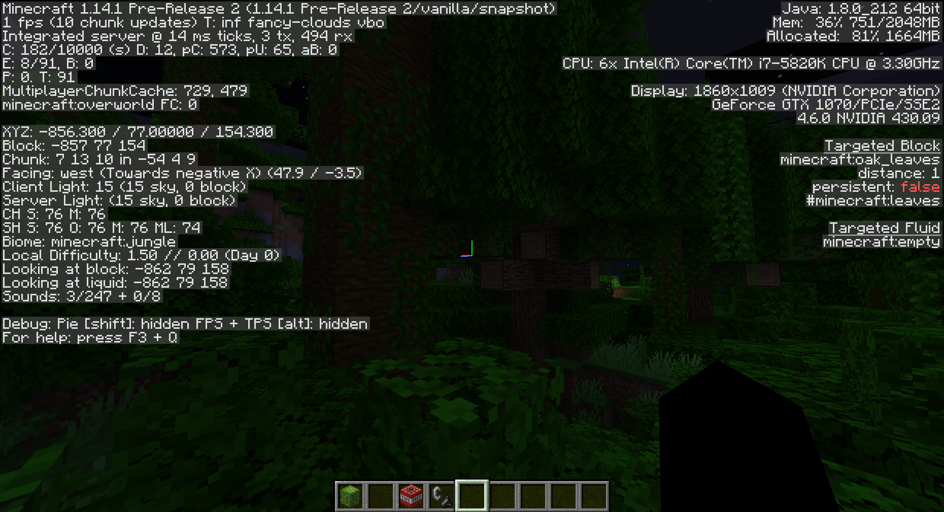 Fire has always been an issue, but in the case of 1.14 fire makes the game unplayable. In the screenshots below there was a pool of lava in a forest the caught only 2 - 3 trees on fire. As soon as I loaded in that chunk my game froze, and I was unable to move. This ruins the game since I have a high-end computer so who knows what it is like for other players on a laptop for example.