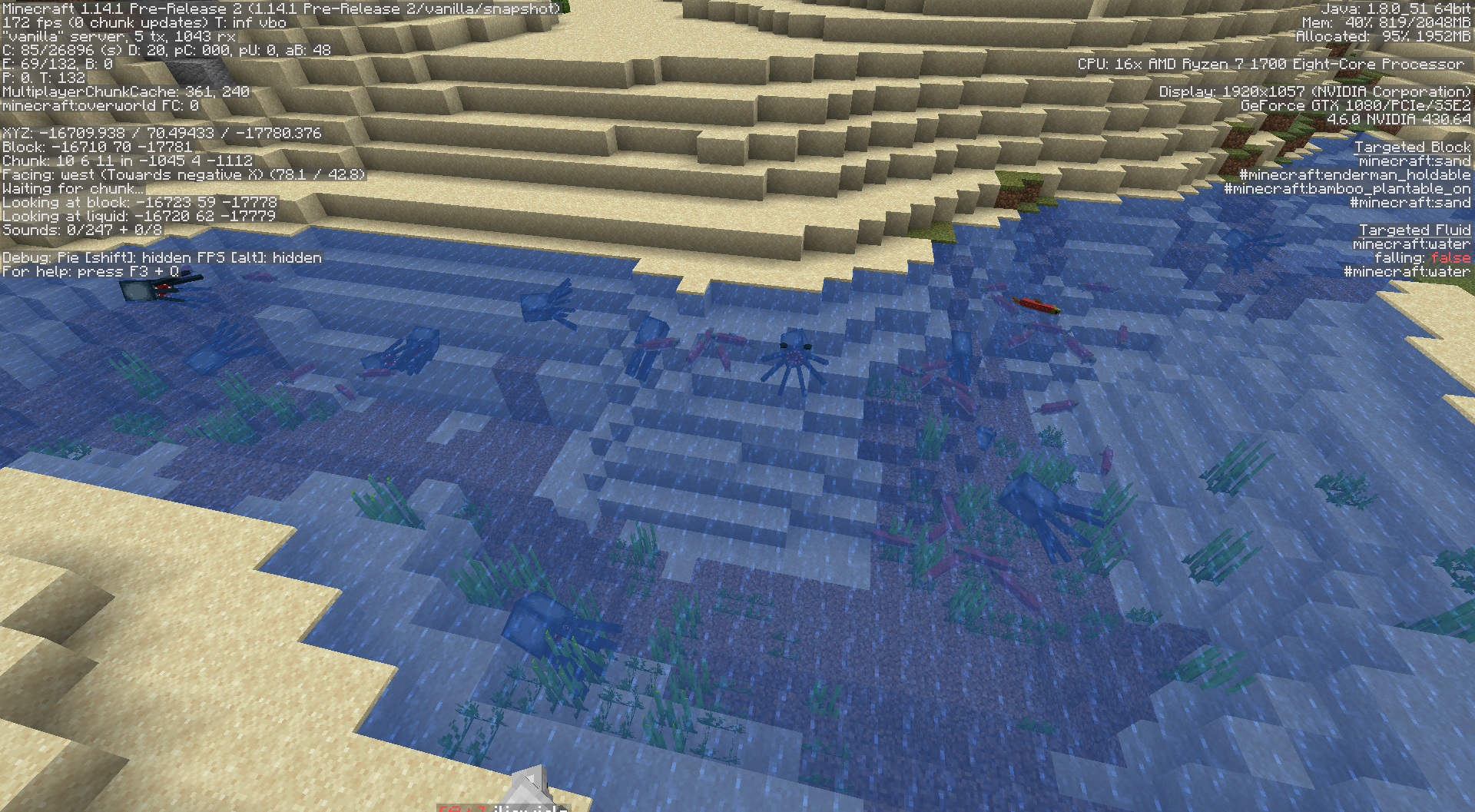 As you can see via the pic upon entering this small area quite a high volume of squid an Salmon spawning in high volumes which is occurring all over various quantities of water including ocean. This map has been upgraded from 1.14-pre1 through to 1.14-pre2