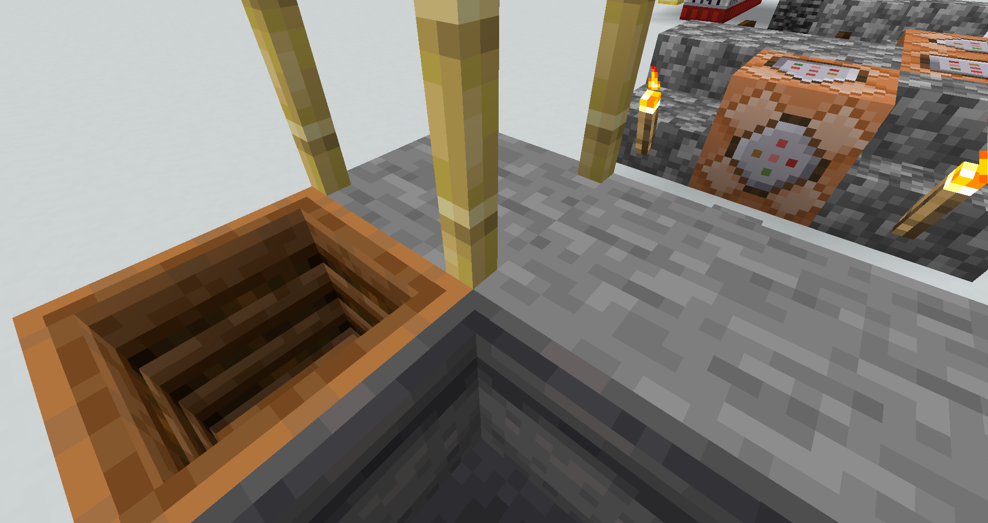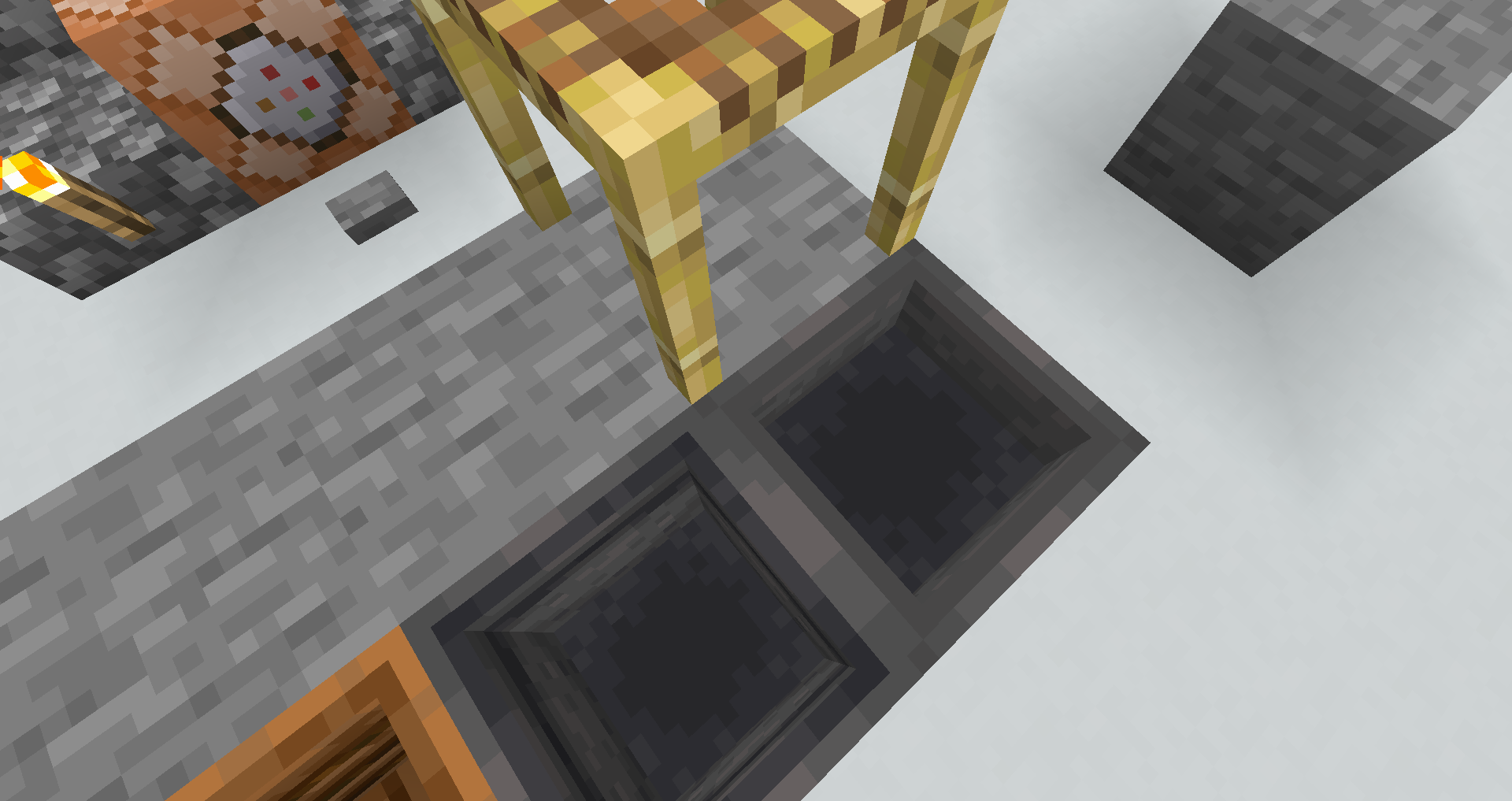 Scaffolding's legs are 2x2 and exist at all four corners of the block. However, despite this, placement on top of cauldrons, hoppers and composters, blocks which should logically be able to support these due to having filled 2x2 areas at each corner at the top of the block, completely fails.