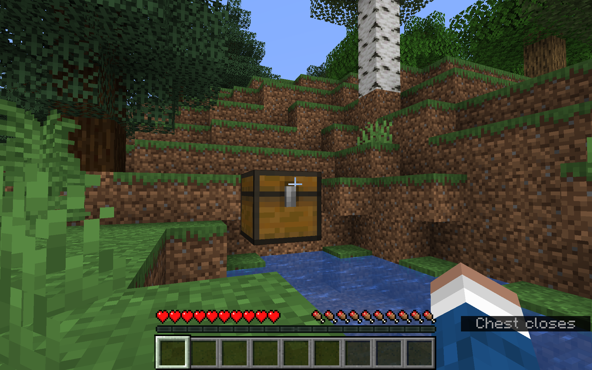 I spawned in my survival world and I was on top of a hill and I looked down and saw the bonus chest floating above water.