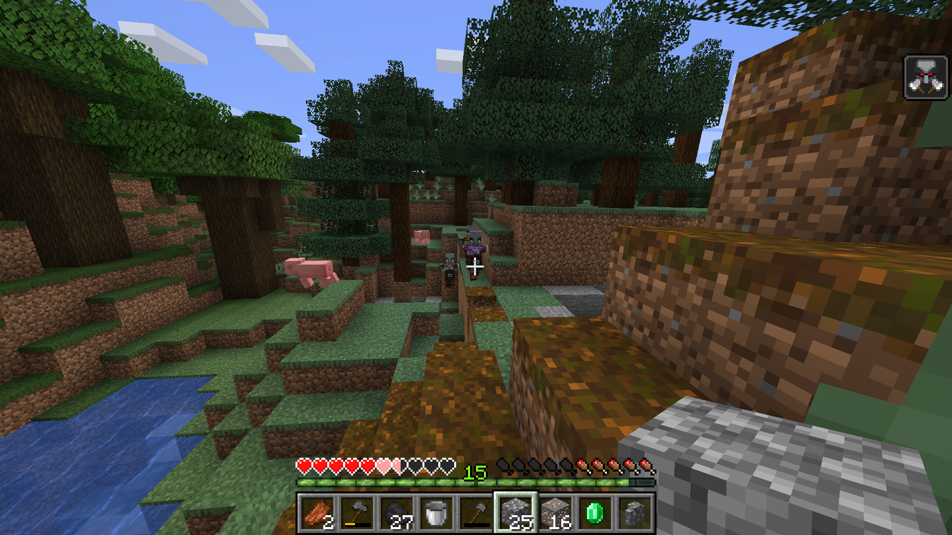In this one, as you can see the 3 Pillagers are running towards me