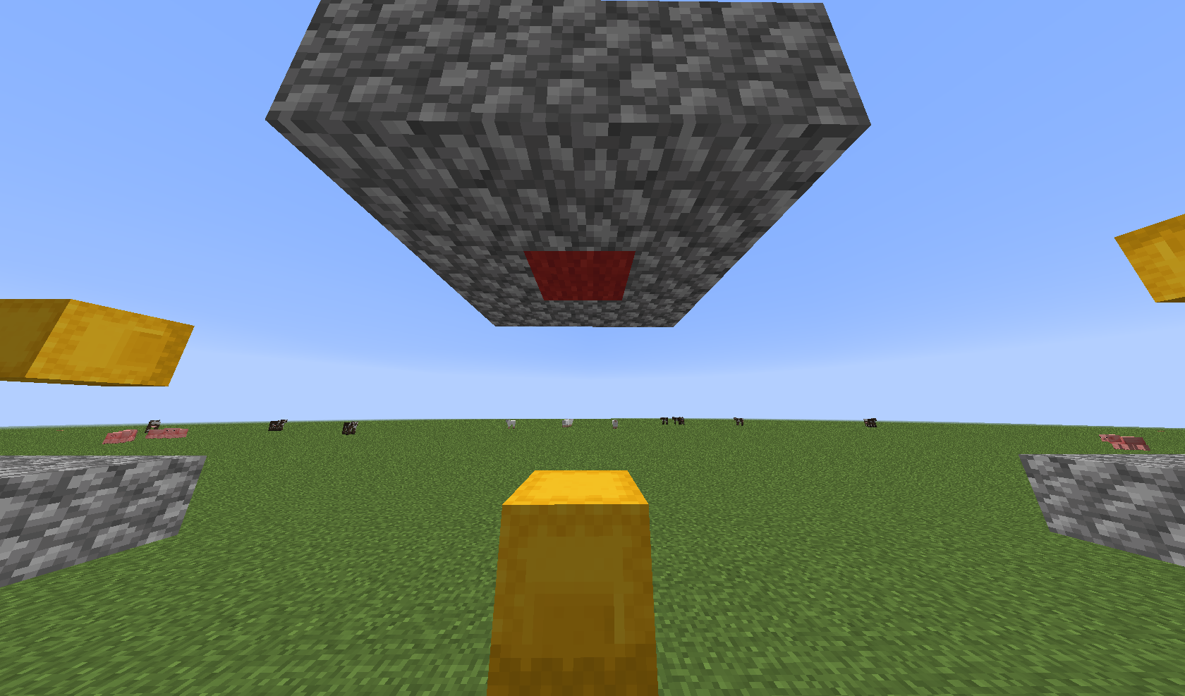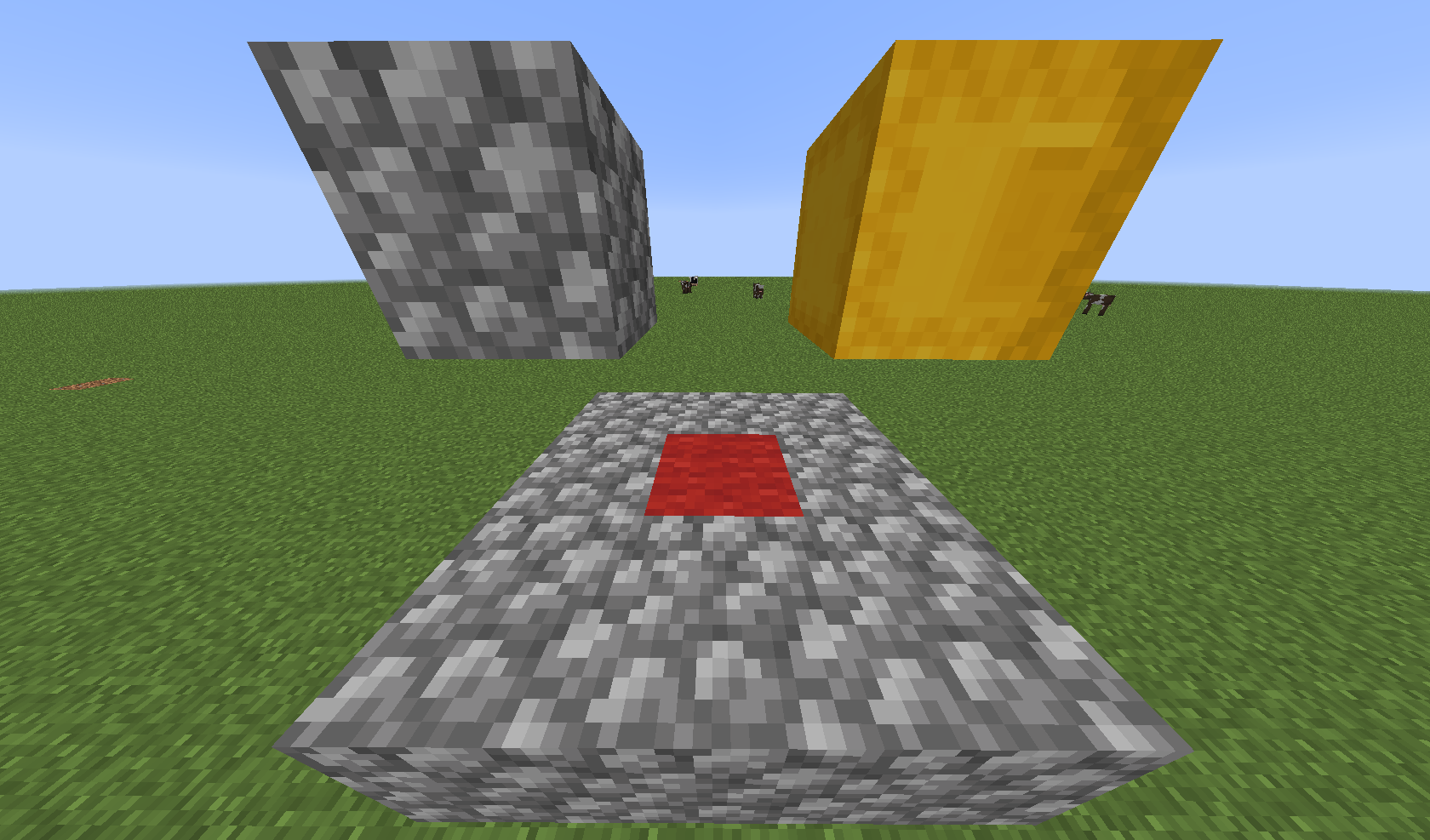 In the screenshots, the red wool ist the block the player is standing on and glitches into.
