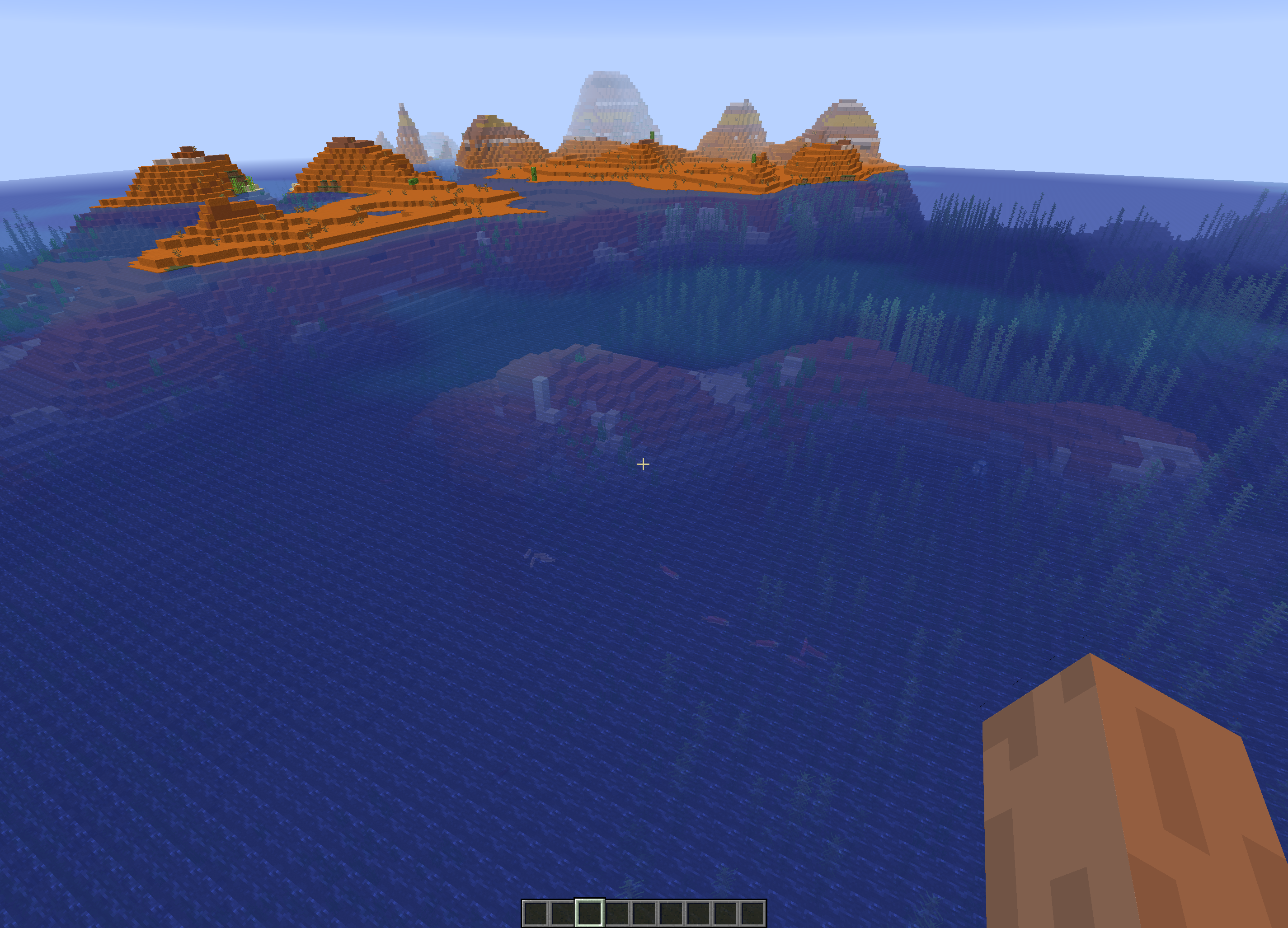 when a mesa biome is near the ocean, red sand generates on the ocean floor..