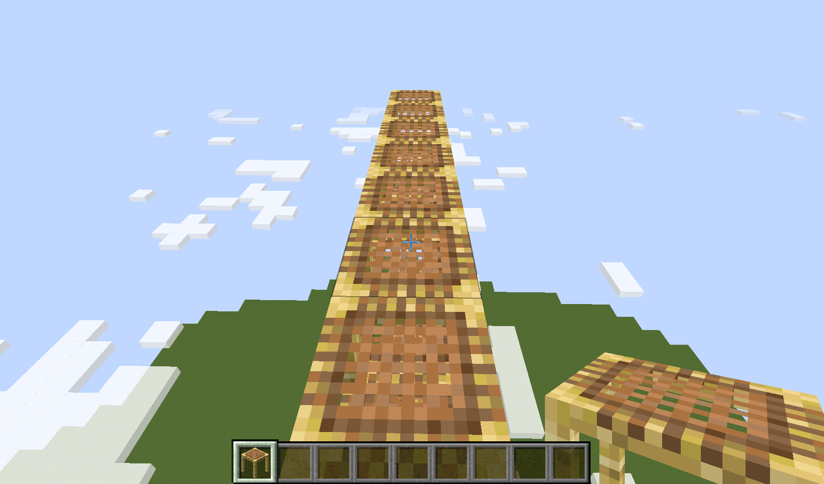 Extend the scaffolding to the side by clicking on the top of the stack.