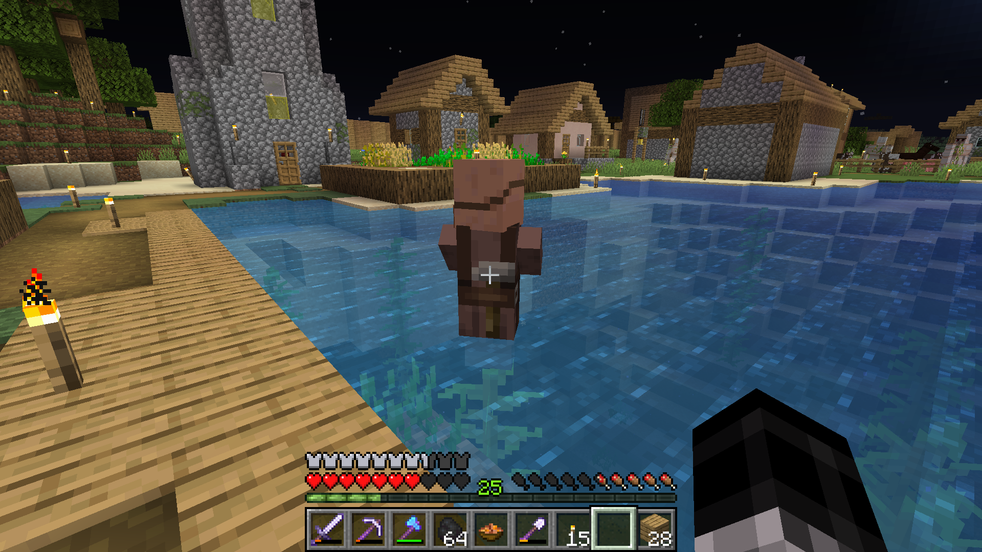 If a Village is by the ocean and theres seaweed at the surface, villagers get trapped spinning rapidly on top of it, not leaving until they are pushed away, like they see the Seaweed as a "food" type plant trying to harvest it