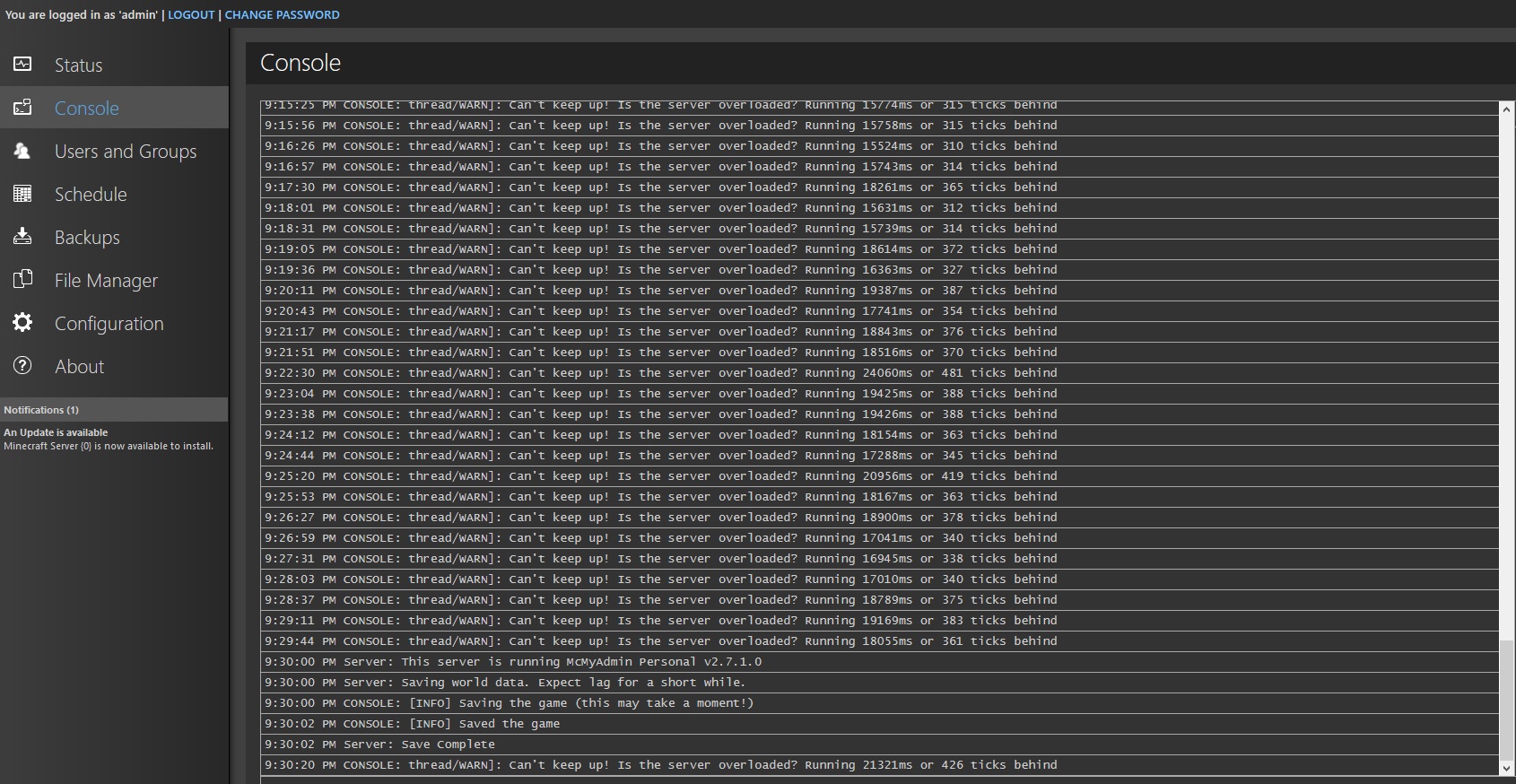 thread/WARN]: Can't keep up! Is the server overloaded? Running 20956ms or 419 ticks behind'