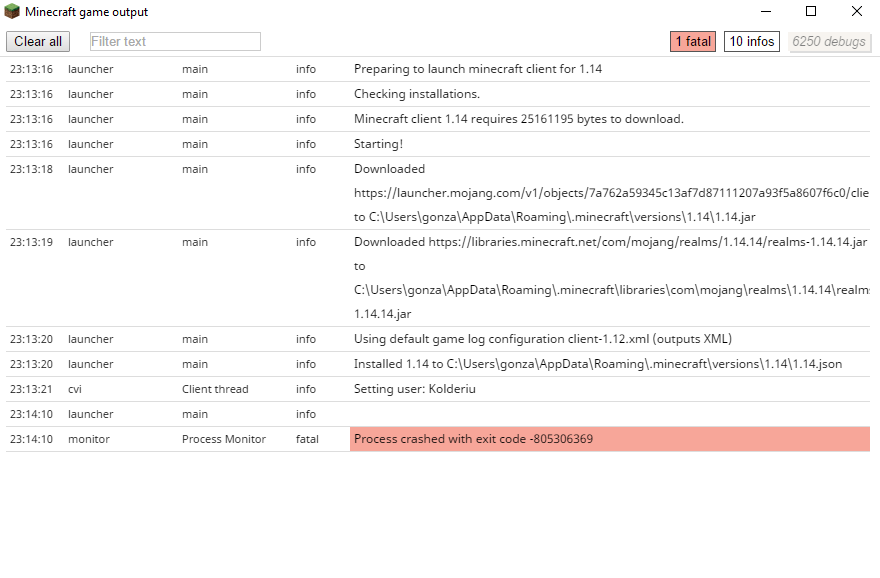 This is shown on the output: "Process crashed with exit code -805306369"