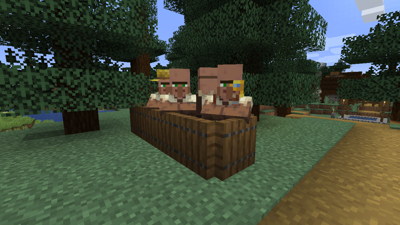 Villagers simply cannot jump over trapdoors. When put in a barrel shape, this pretty much traps them. There's several examples of such a design found in villages, so a player may end up having to remove these trapdoors or else their villagers will end up clustered together in a small container shown in the image