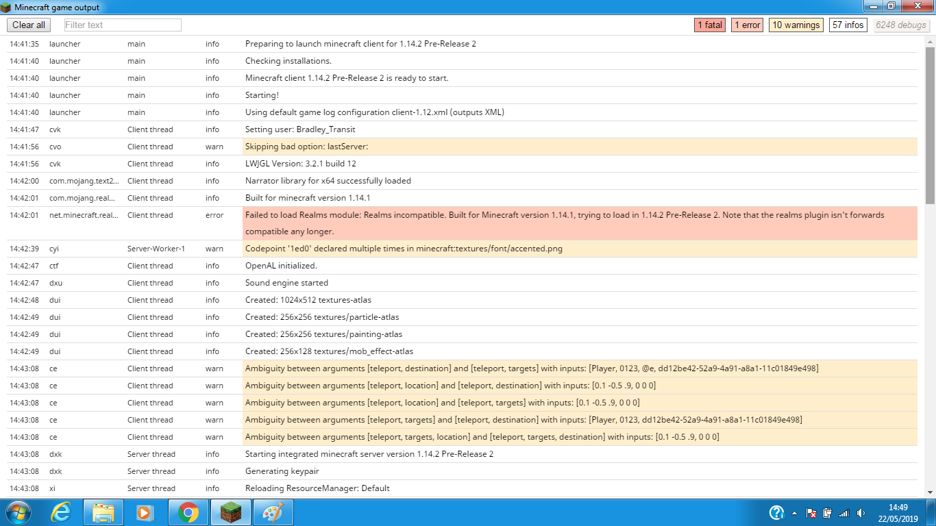 [minecraft/launcher_log.txt|http://hopper.minecraft.net/help/guides/minecraft-logs/].This issue has been temporarily closed as Awaiting Response. Once the requested information has been delivered, the report will be reopened automatically.