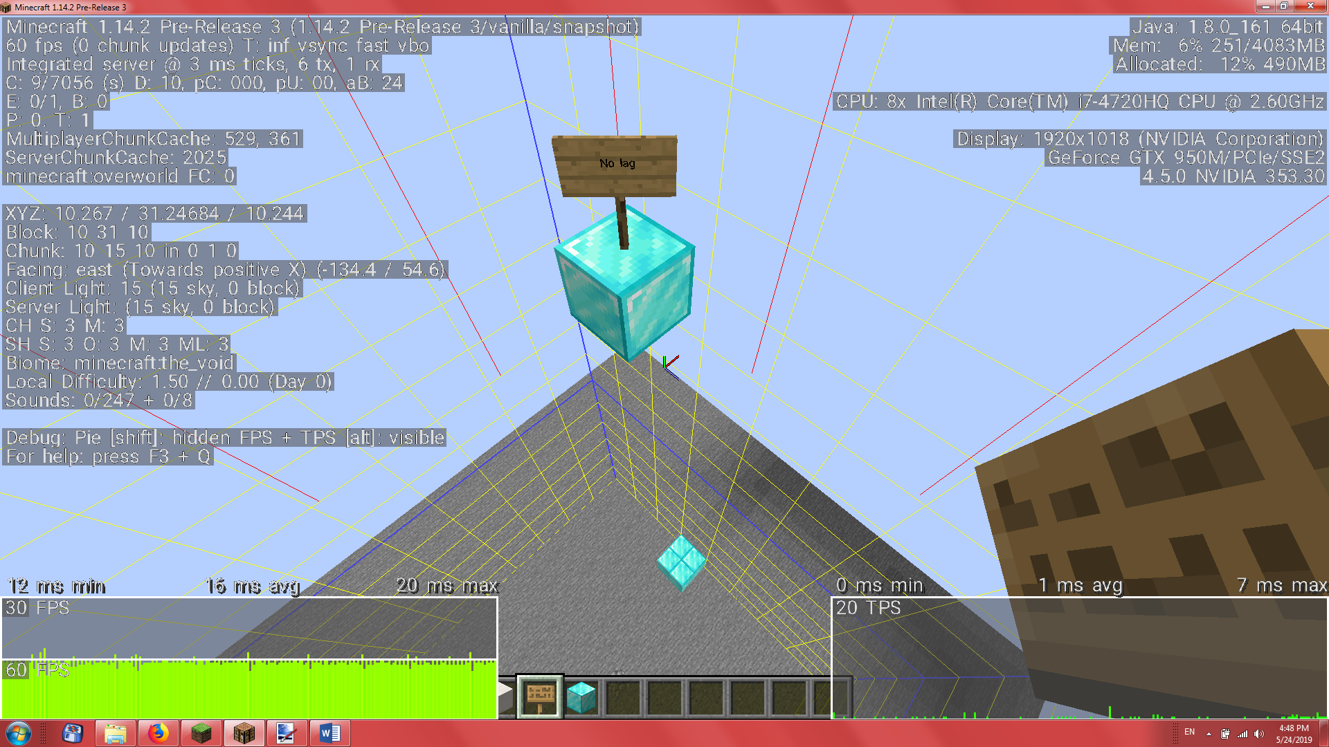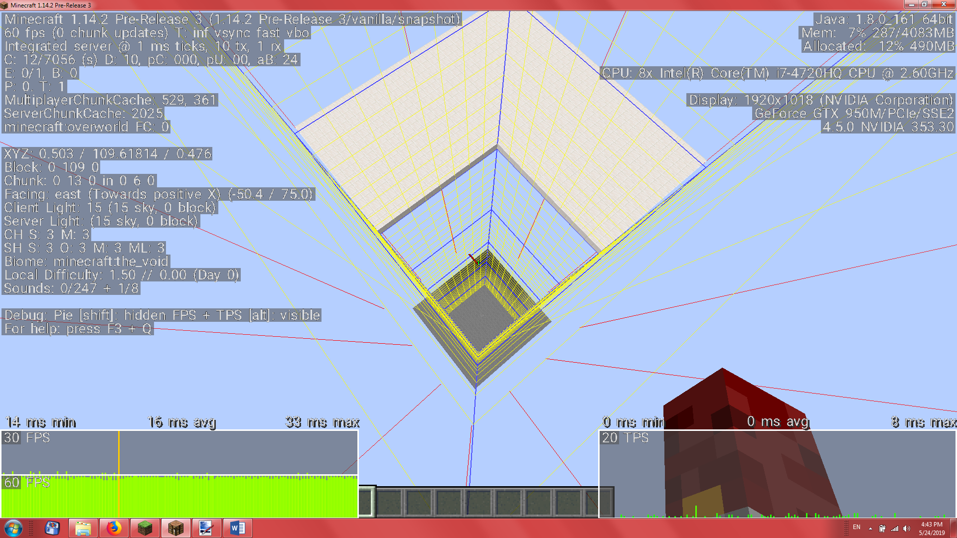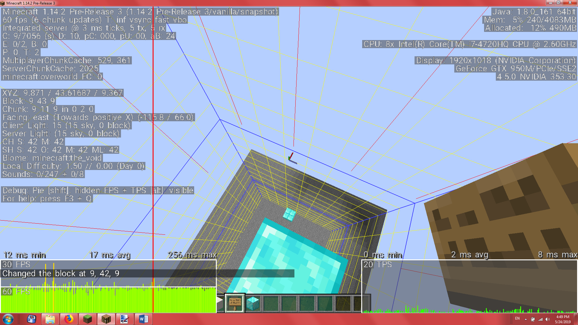 I noticed a bug in version 1.14.2 pre2 which is still noticeable in version 1.14.1. I experienced extreme lag when placing a block in empty part of the chunk (even if the chunk is totally empty).