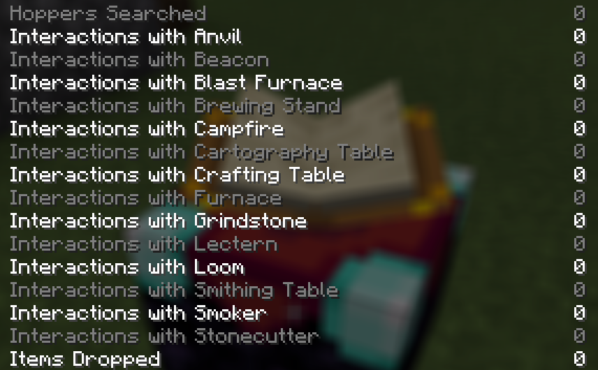 ❌ - The game includes statistics for other usage blocks like crafting tables, furances, grindstones, etc, but no "Interactions with Enchanting Table" statistic.
