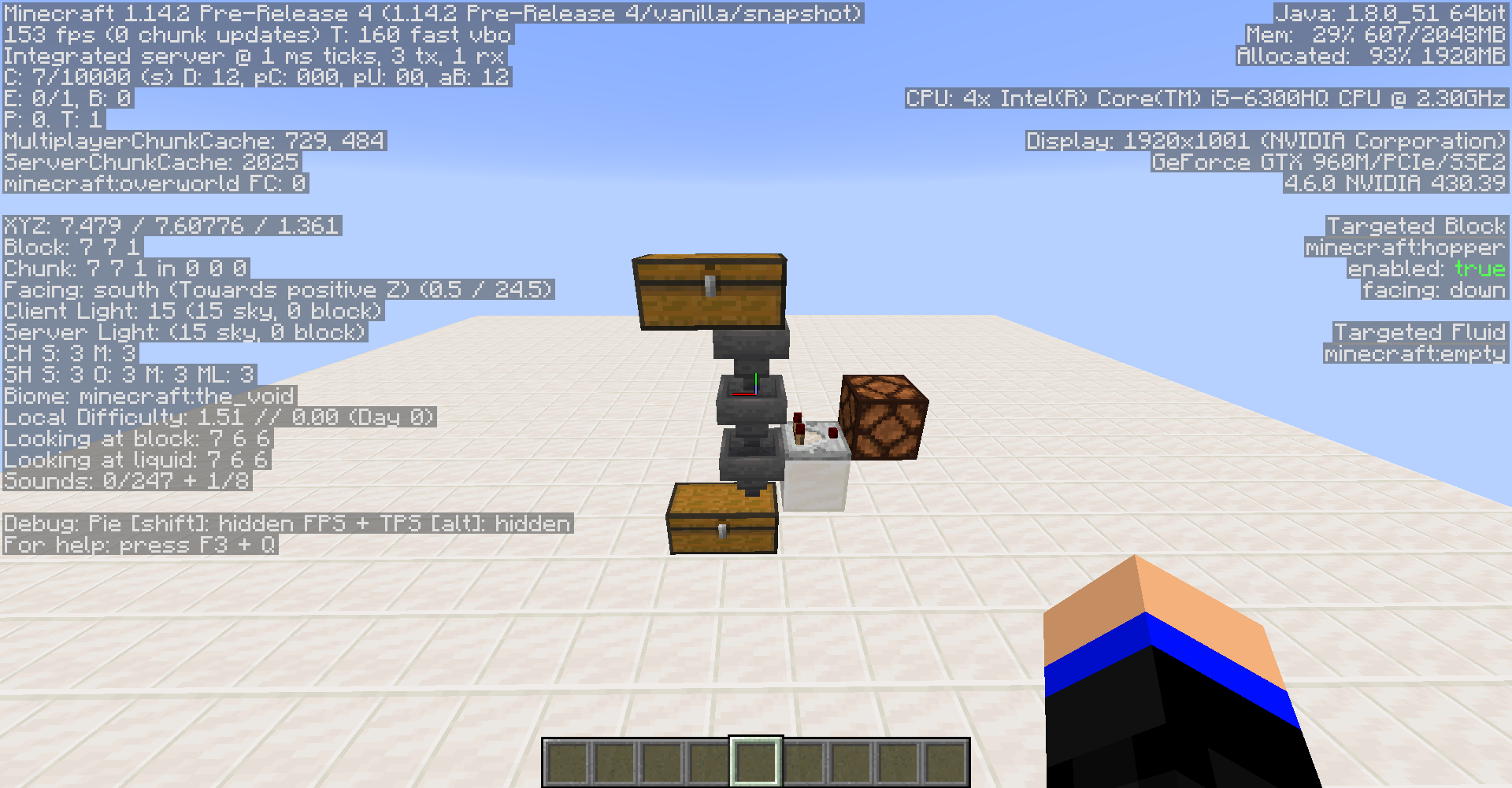 The video attached was recorded in 1.14.2 Pre-Release 4. Further information about the environment the test was conducted in can be seen in the screenshot.