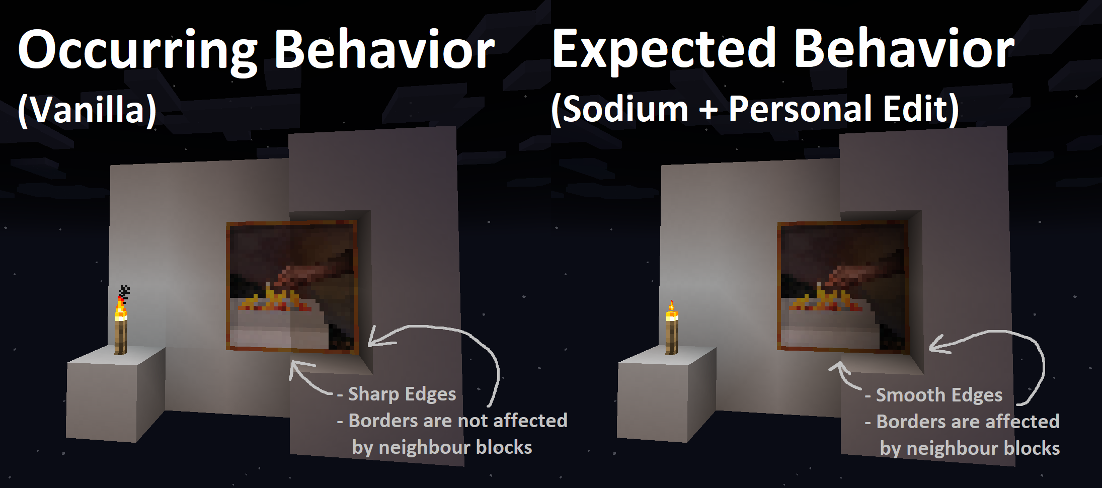 The following do not have smooth lighting causing sharp shading cuts when there are different light levels across them: