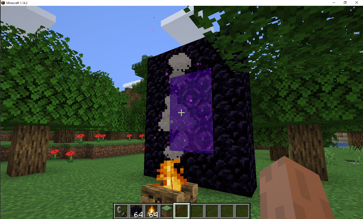 The nether portal is rendering above the smoke particles - see attached photo. To recreate, place a campfire in front of a nether portal.