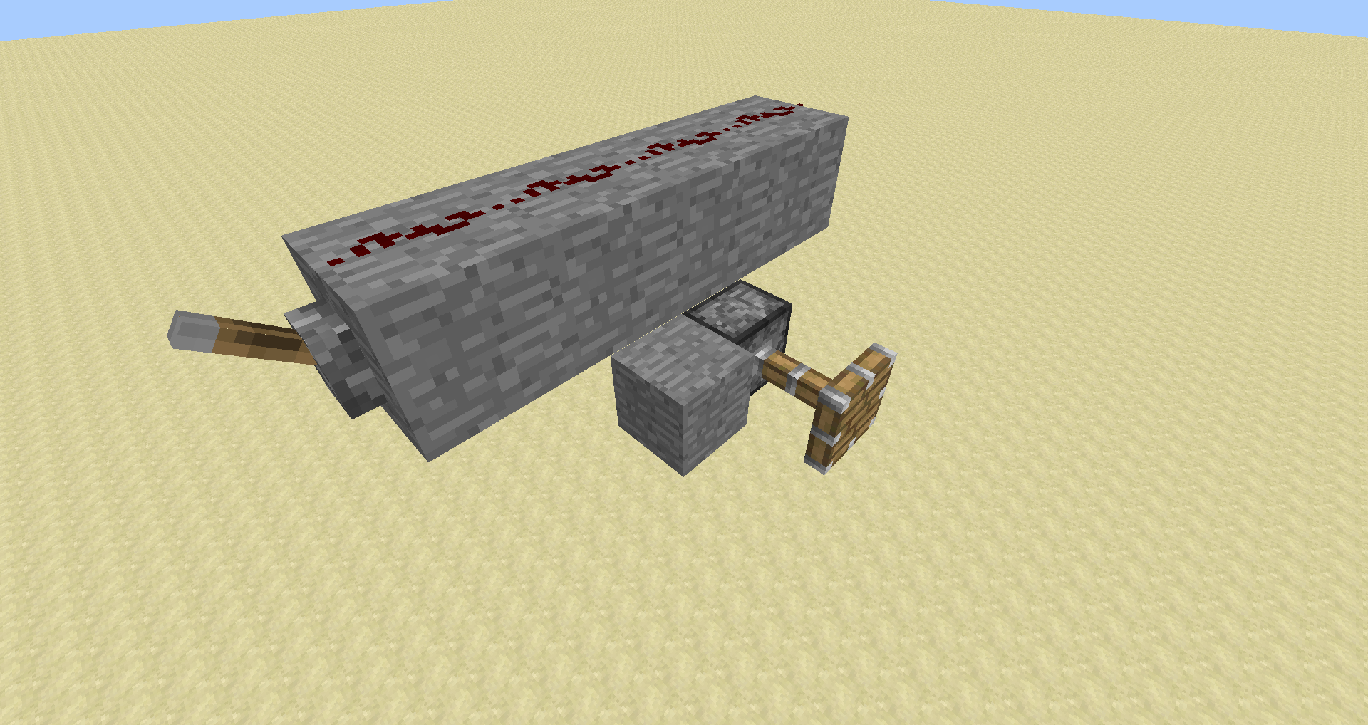 I built a line of Redstone on stoneblocks over a piston.