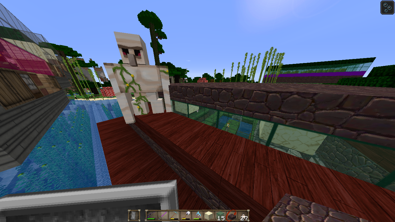 An iron farm was created and successfully only spawned golems inside the farm. A structure was built next to it but covered in glass blocks and bottom half slabs, but golems seem to be spawning through the glass blocks and on to the bottom half slabs, as well as sometimes directly on top of these blocks.