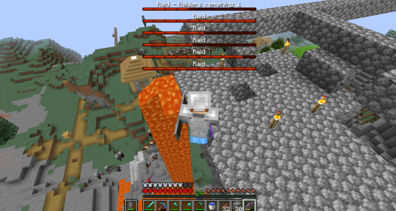 There is an infinite number of raids going on at once? I think it could be something to do with my villager breeder but there where more than 6 raids going on at once. I even got the hero of the village achievement and still they kept on coming.
