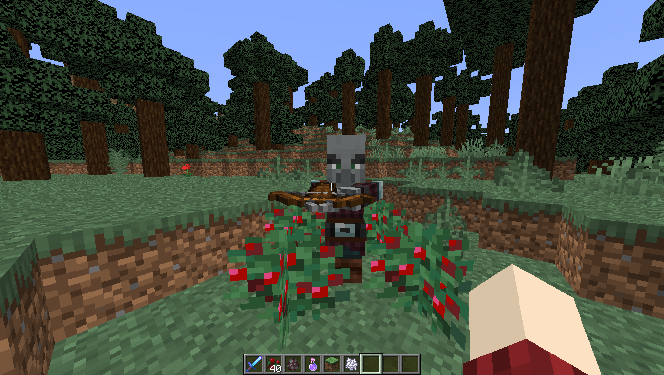 "when the pillager is in a berry bush i tries to kill me"