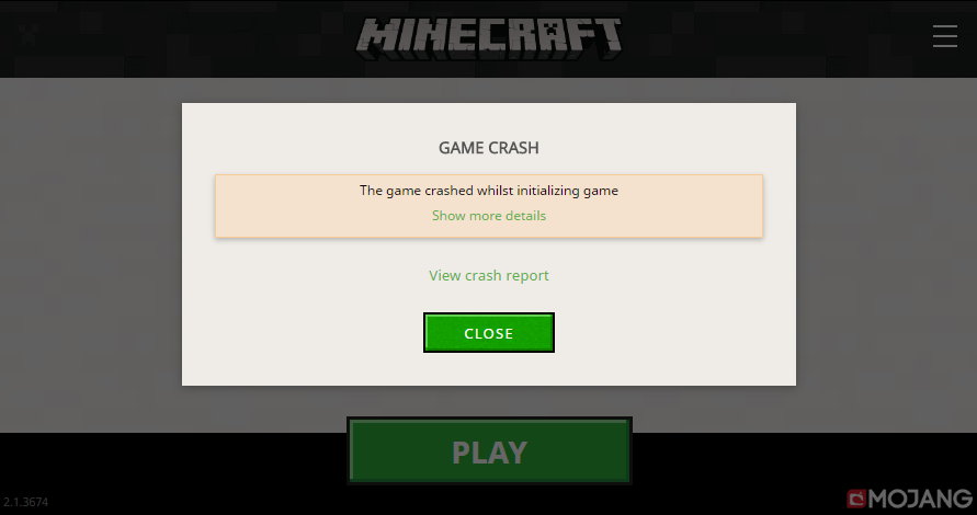 "The game crashed whilst initializing game The game crashed whilst initializing game