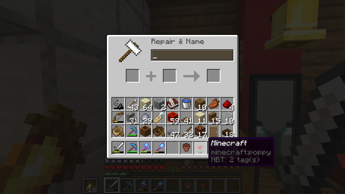 3) Break the flower pot and the renamed poppy (Minecraft) will change its name from Minecraft back to poppy.
