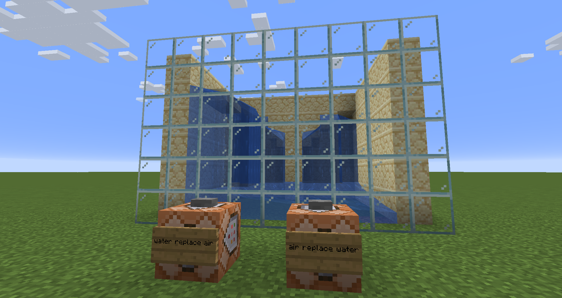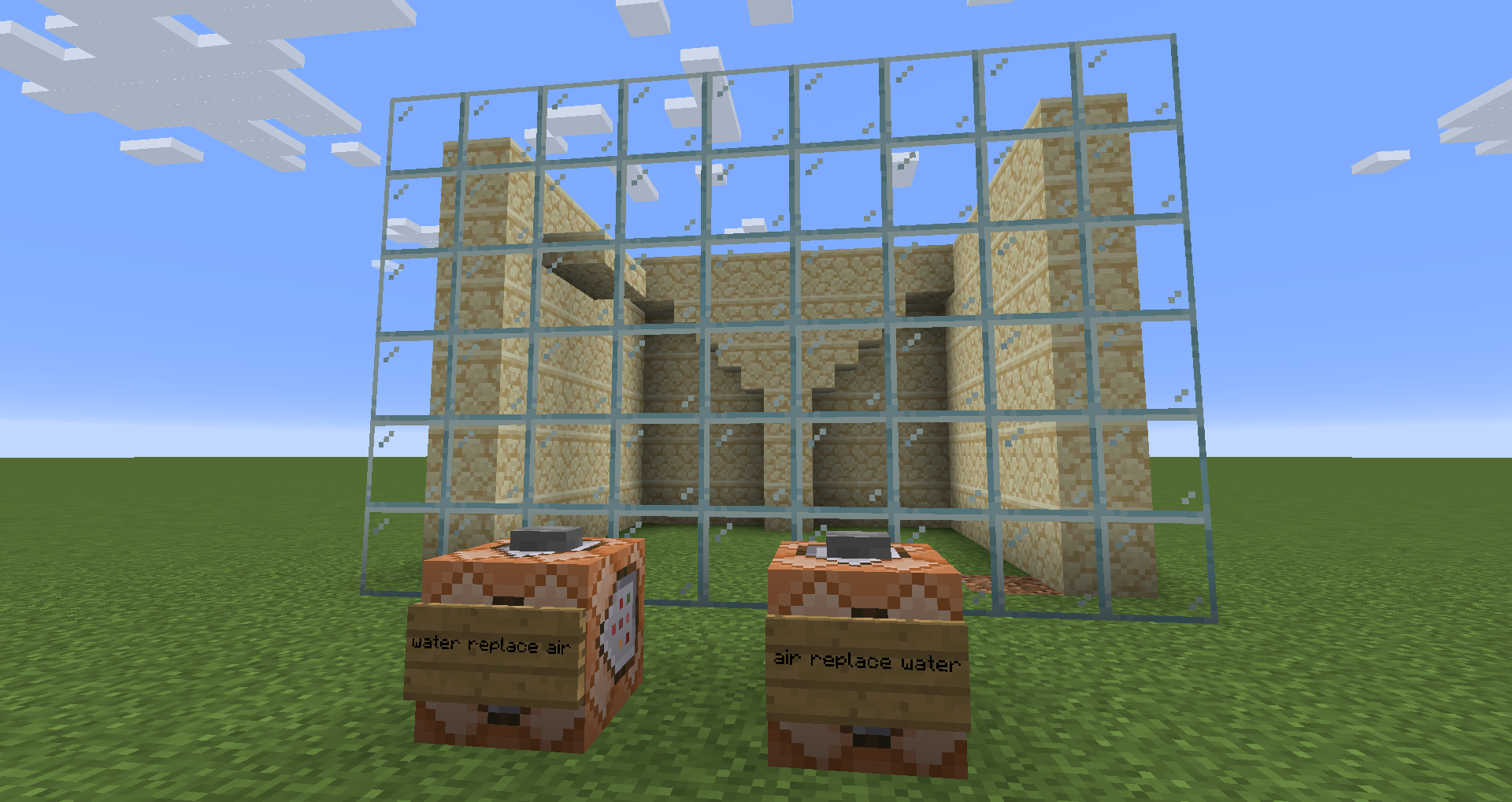 Going the other way ('fill [coords] air replace water') does not remove the waterlogging (third picture).