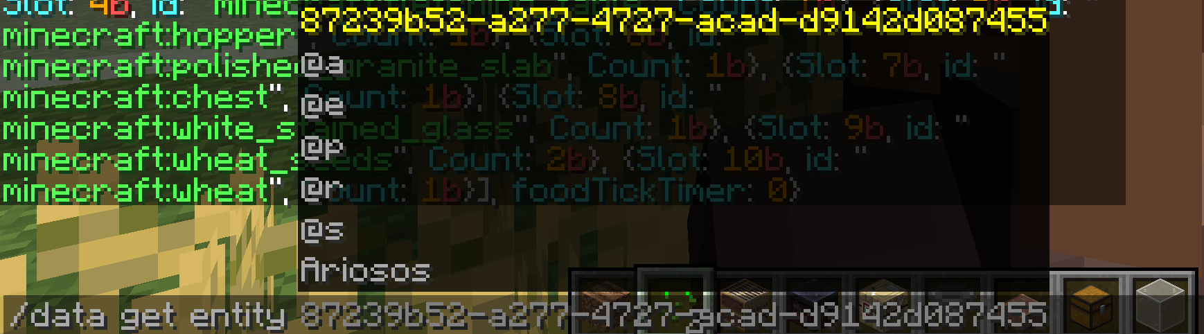 It's /data get entity (and look at the entity you want to get data for when you type it. It'll appear in a list). If the entity is moving around a lot, you may have to trap it (I think there's a command somewhere to turn off AI for all entities, though).