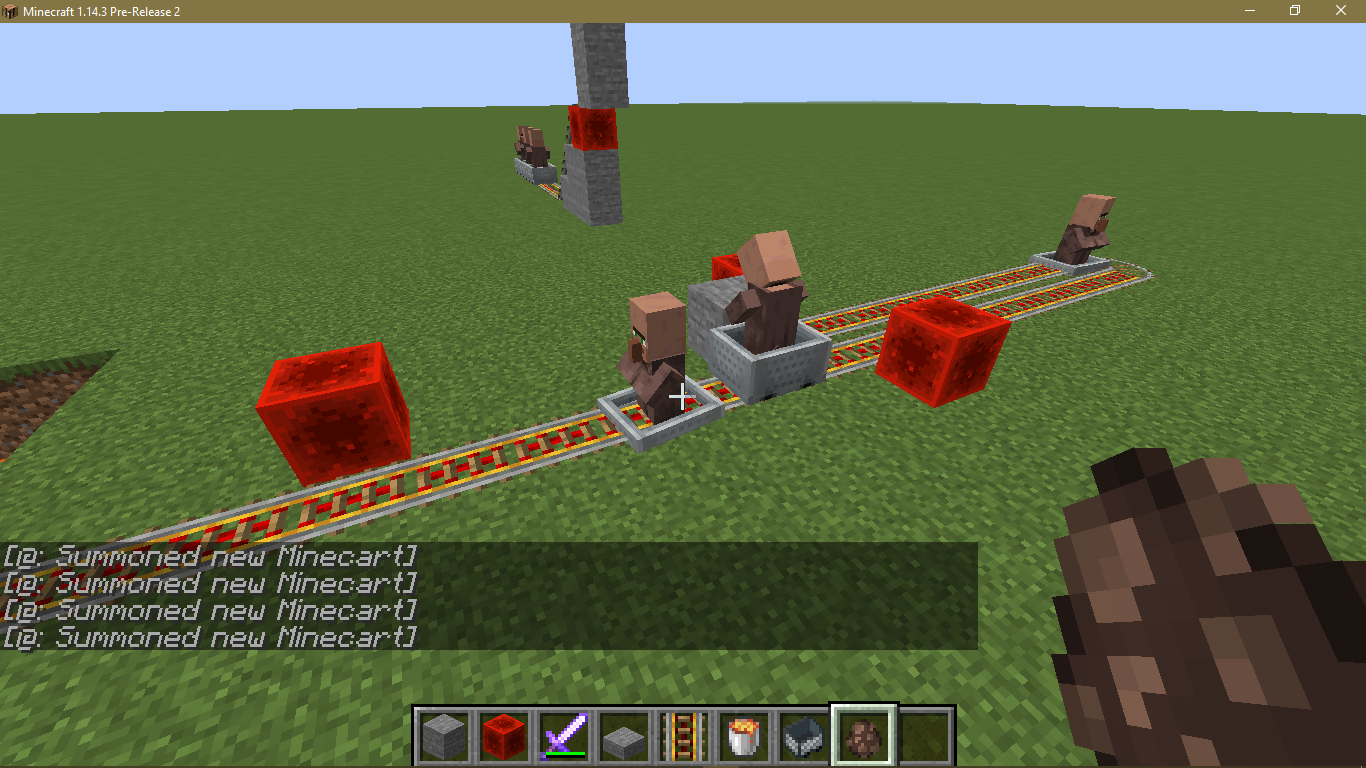 3. place a villager 2 blocks above the rail falling onto the rail.