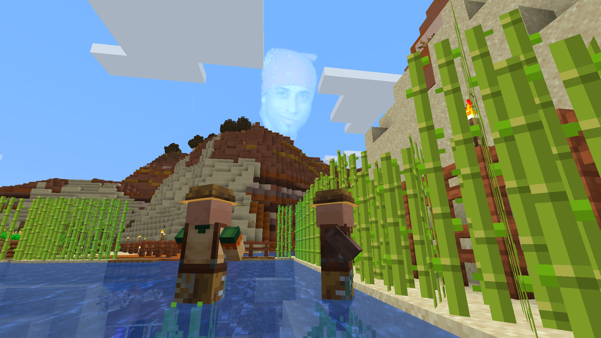 mob, spin, villager, water