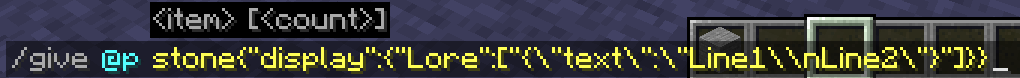 This would be really easy to do if \n worked in item lore, because I could simply make it so that the English translation has a \n in it.