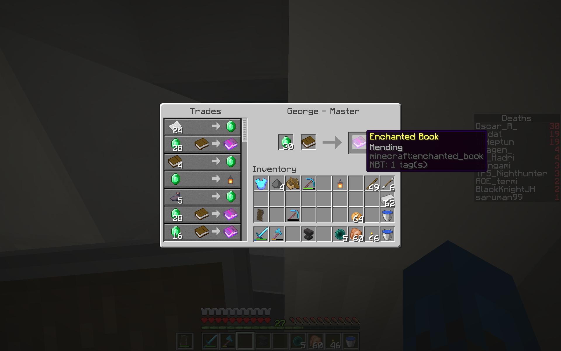 So when I go to the villager and open the trading window it works just fine. Then I try to buy some things. For example I bought a lantern. That also works as intended.