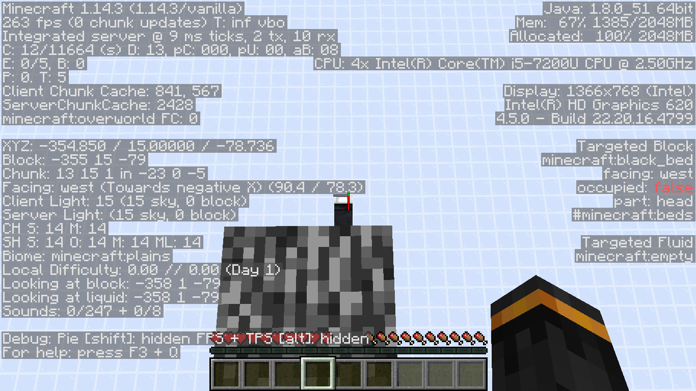 When you jump from a height great enough to take damage on falling on a bed, the damage is taken after you leave the bed, not when the player comes in contact with the bed. I found out this bug when I was lazy, so I jumped into a ravine that contained my "open air" base and onto my bed. I did not take any damage when I slept on the bed but almost died when my player woke up.