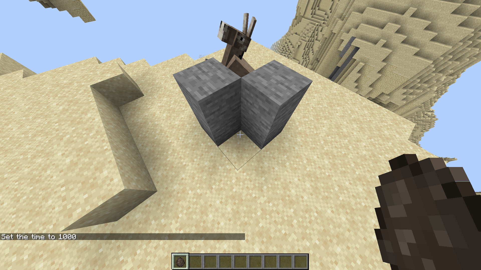 When putting animal where the crosshair is (in the picture where the chatbox says: time set to 1000) animal sometimes will slide in the middle and die and sometimes slides through). And when hitting the animal, it jumps in the middle too and dies. And the animal gets black texture (seen in the second picture.) (This bug happened in both pictures.)