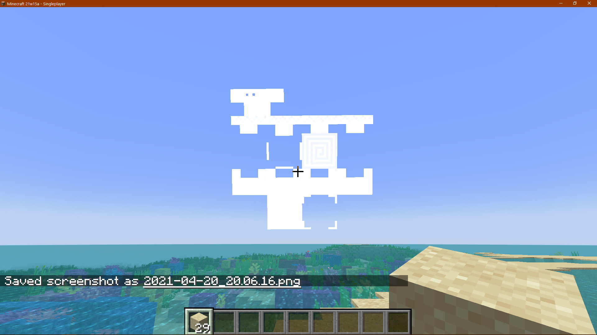 The moon was going down, and I looked at the rising sun. It looked like a skin file, and it was the texture file for a pillager. I did not have any texture packs, mods, shaders, or any such things loaded. It was vanilla Minecraft. In a different world the sun looked like a map. It might have something to do with the fact that I was in a raid, when the sun looked like a pillager. Also When the sun looked like a map the map looked like the sun. The pillagers were also solid black, though the crossbows showed up. When I pressed F3+T to reload resource packs it went back to normal.