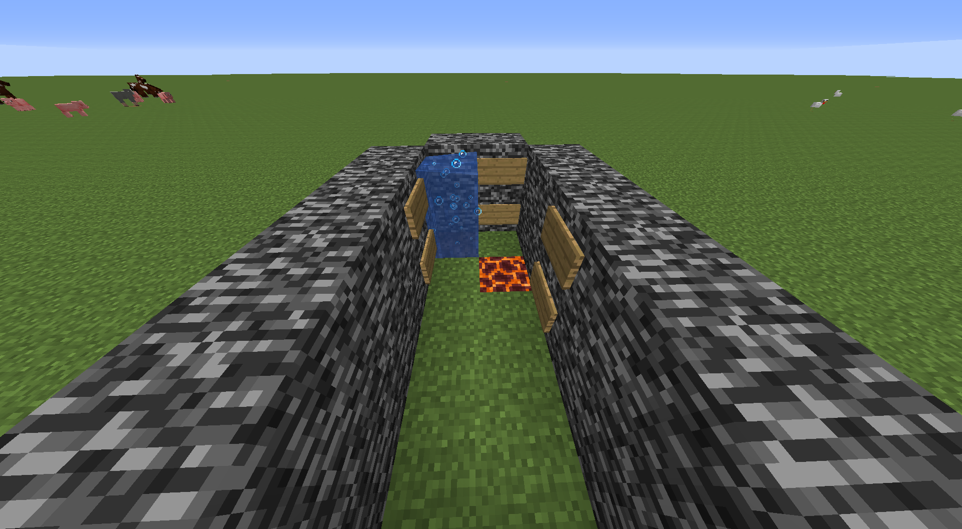 I was building the water elevators using soul sand and magma blocks diagonal to each other. Let's say I put the magma block and soul sand at height 10, then I put signs to the right, in the front, and to the left of the blocks at height 11 and 12 so i can fit in and expecting the water not to go through the signs. You can place a water bucket on whichever block first at height 11 and it'll not move. You can do that for 12, too, and above if you continue above the same block. However, if you try to put down water on the opposite block, a new water source will form in the place of the sign with the sign still there and it'll flow like normal water being blocked by nothing. Since I like to make small builds in tight spaces, an elevator that is right next to each other is needed and the diagonal adds aesthetics. It doesn't concern me much about my aesthetics as much as it concerns me that some really cool builds might not work because of this, and the rather inconsistency of the signs blocking water. In the images you can see how on the soul sand water is placed 2 blocks high, but once water is on the magma block, it goes everywhere. I followed it up by stopping the sources i put down on the soul sand and magma block to show that new sources actually appeared where the signs are, which is visible in the last image.