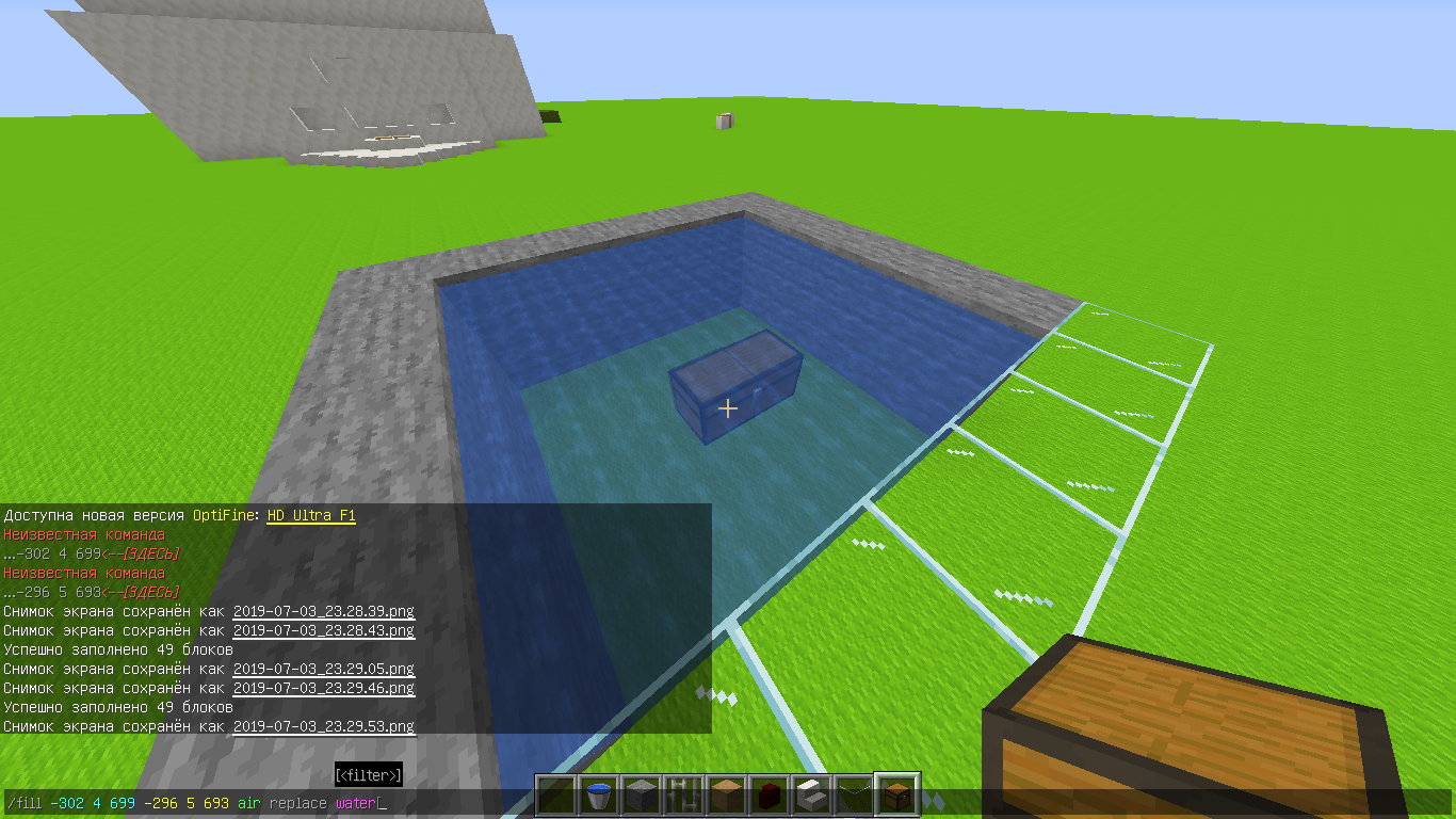 I wanted to experiment with the commands. And having written the command "/fill ~ ~ ~ ~ ~ ~ air replace water" all the slabs (Chests, fences) with water remained! You can somehow fix this bug.
