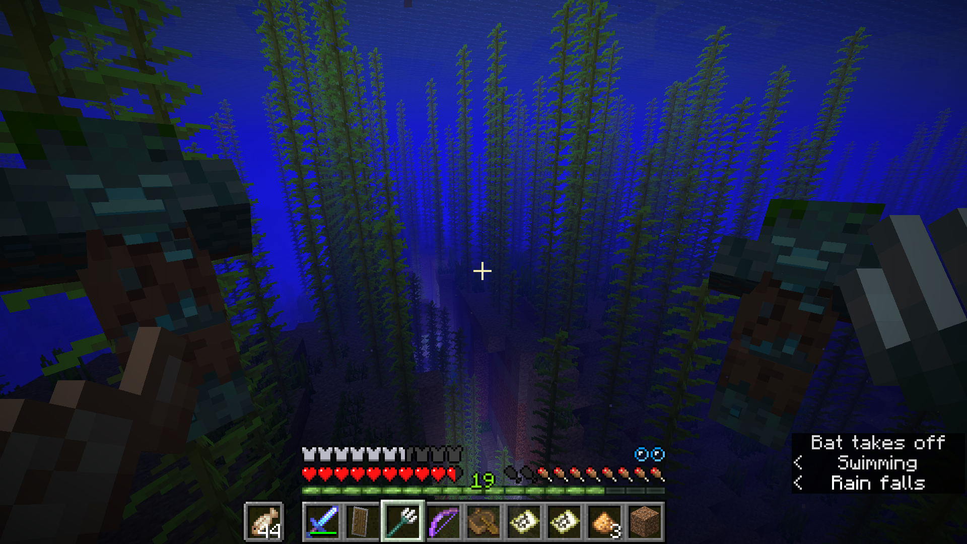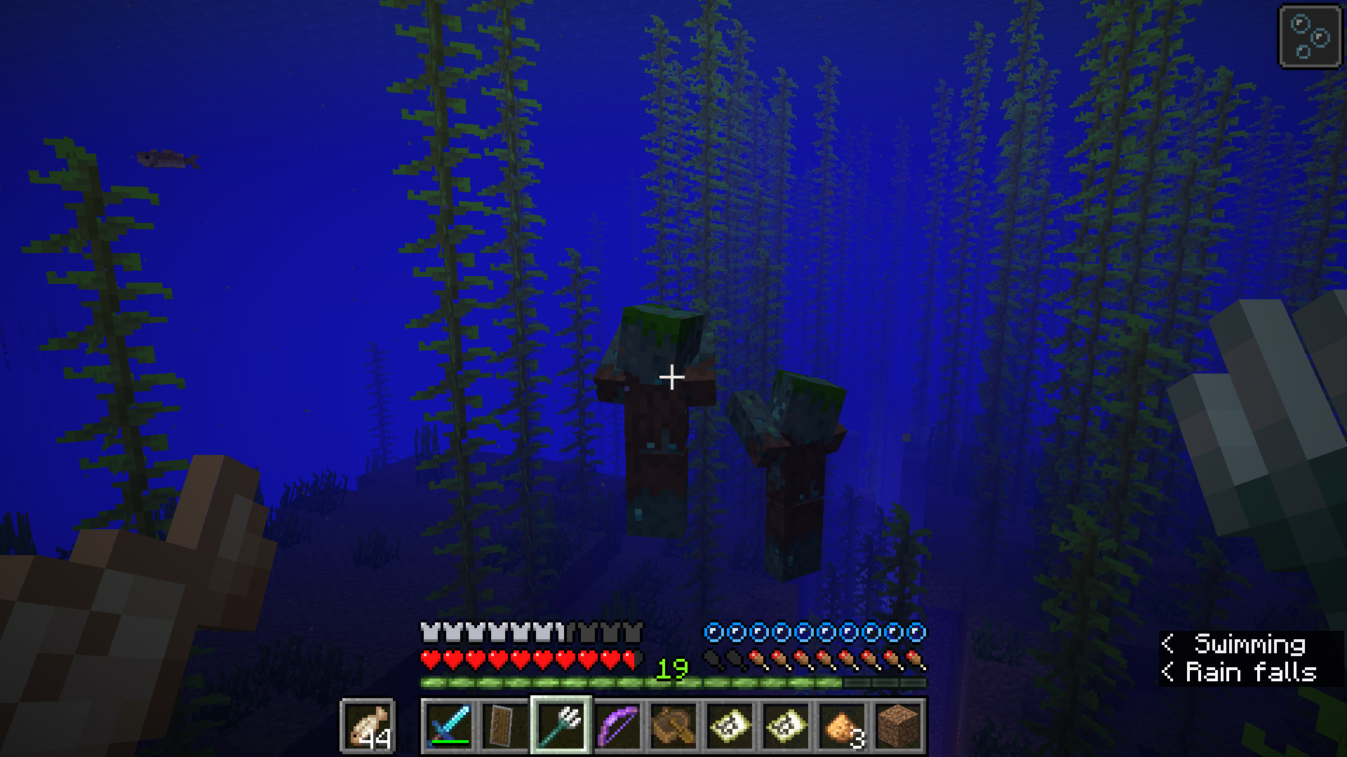 I was swimming through a ravine while being followed by two Drowned. I turned around and I noticed the Drowned were not moving. I hit a drowned with my trident, it reacted by being pushed away, but it did not go after me.