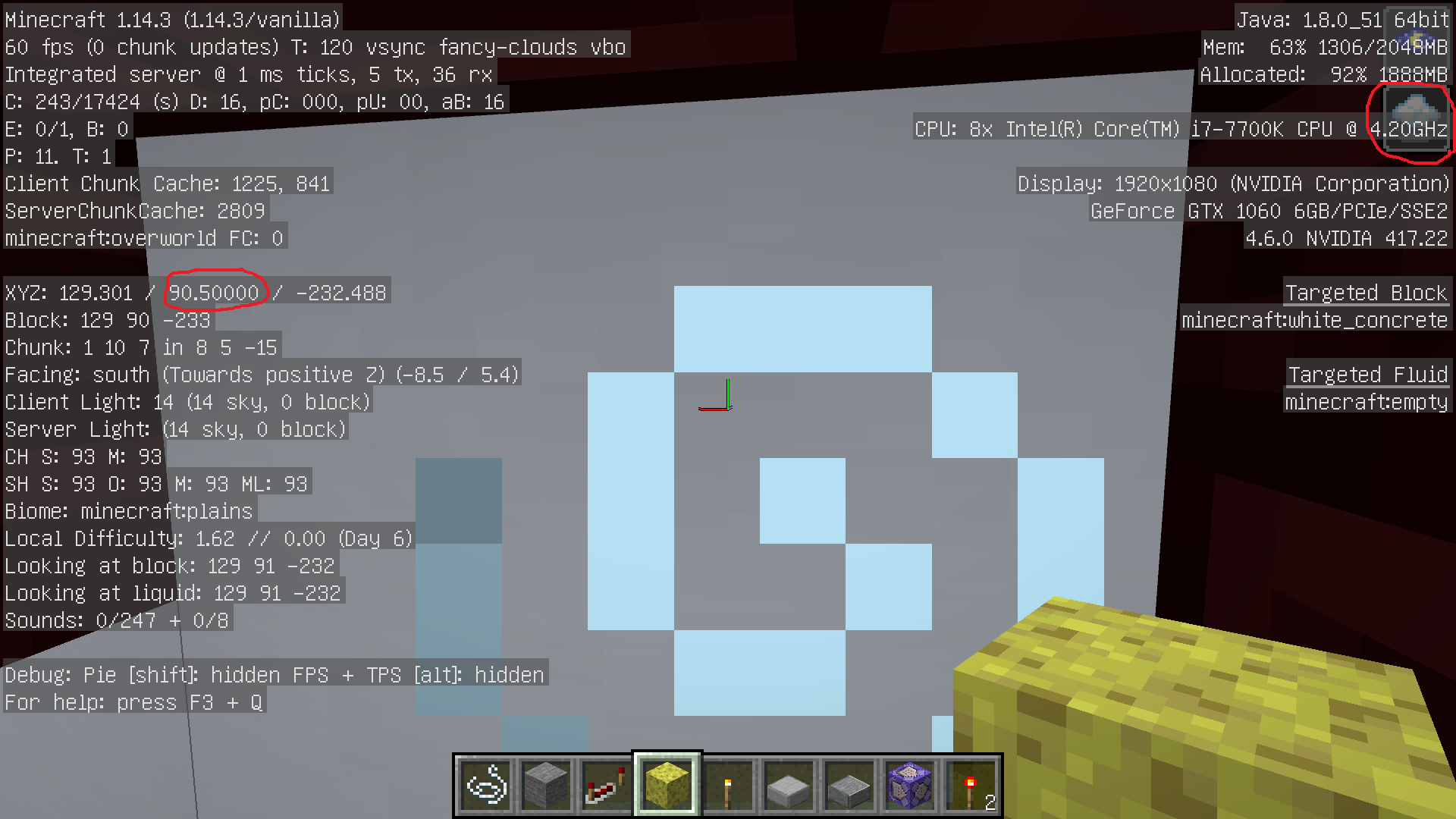 Stand in a two block tall space and run the following command: