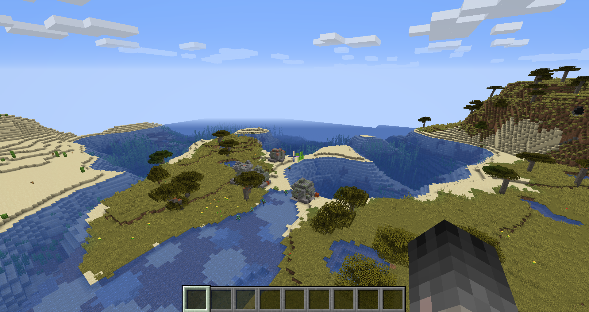 Sometimes you can find ocean ruins generating next to each other on dry land.