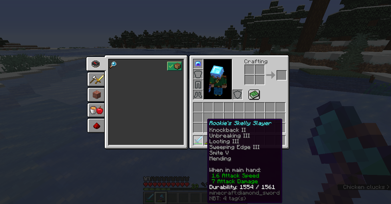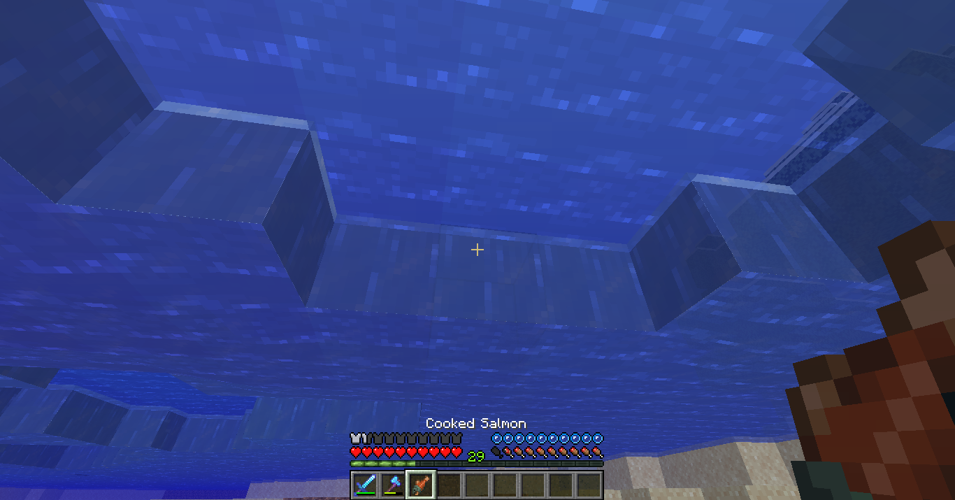 Cod and Salmon dropping cooked variations instead of raw when killed with diamond sword (knockback 2, unbreaking 3, looting 3. sweeping edge 3, smite 5, mending) and diamond ax (unbreaking 3, efficiency 4)