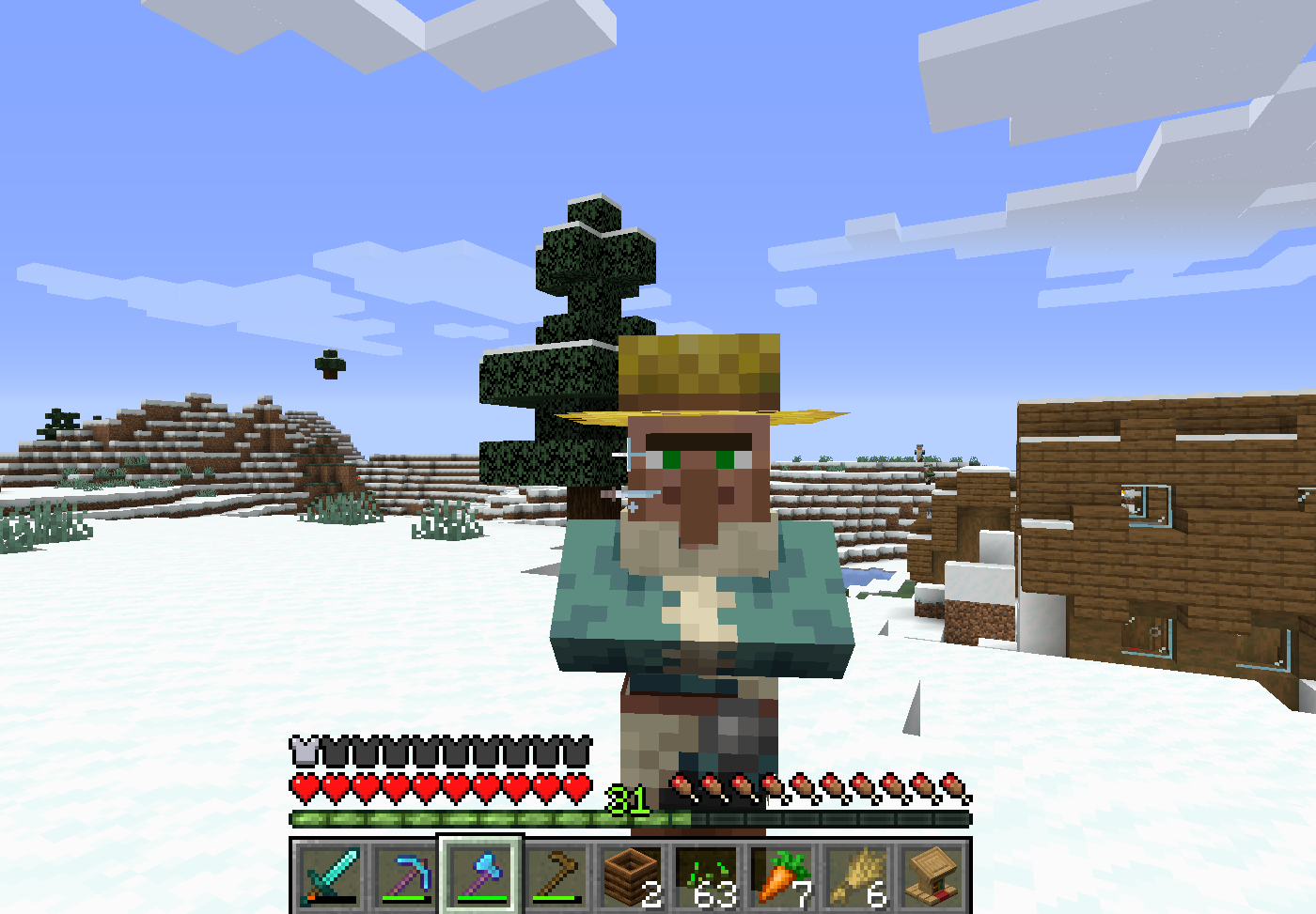When you try to click on a librarian or a farmer it sometimes wont let you see the trades. You have to put down a lectern or composter beside them to see it, very annoying. It will show the trade for a split second but you cant actually trade with them. In the picture I just right clicked with my pickaxe as you can tell because it went below the screen and the trades didn't open.
