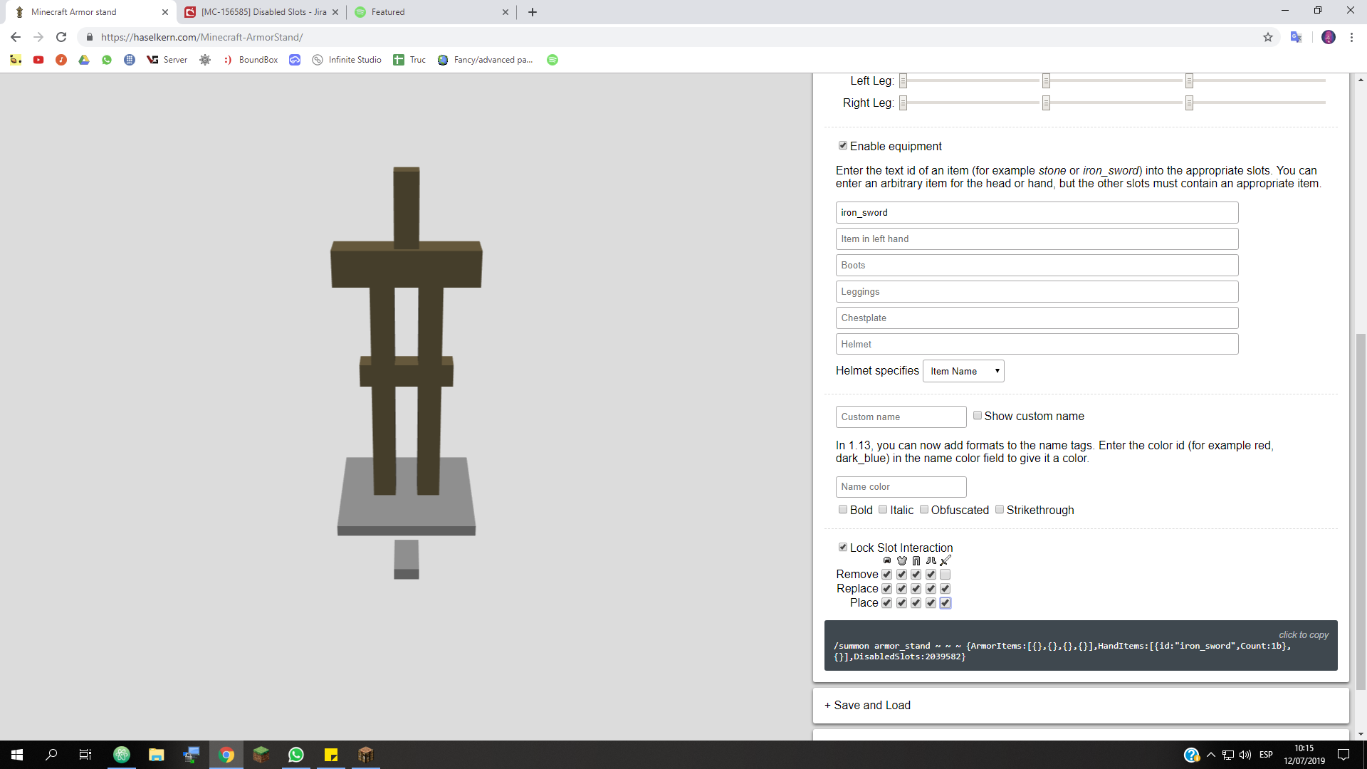 In 1.15 pre-1, I tried to disable all slots for an armor stand (DisabledSlots:2039583), but it doesn't work, I can still e.g. have the AS equip a helmet, whilst being in Survival.