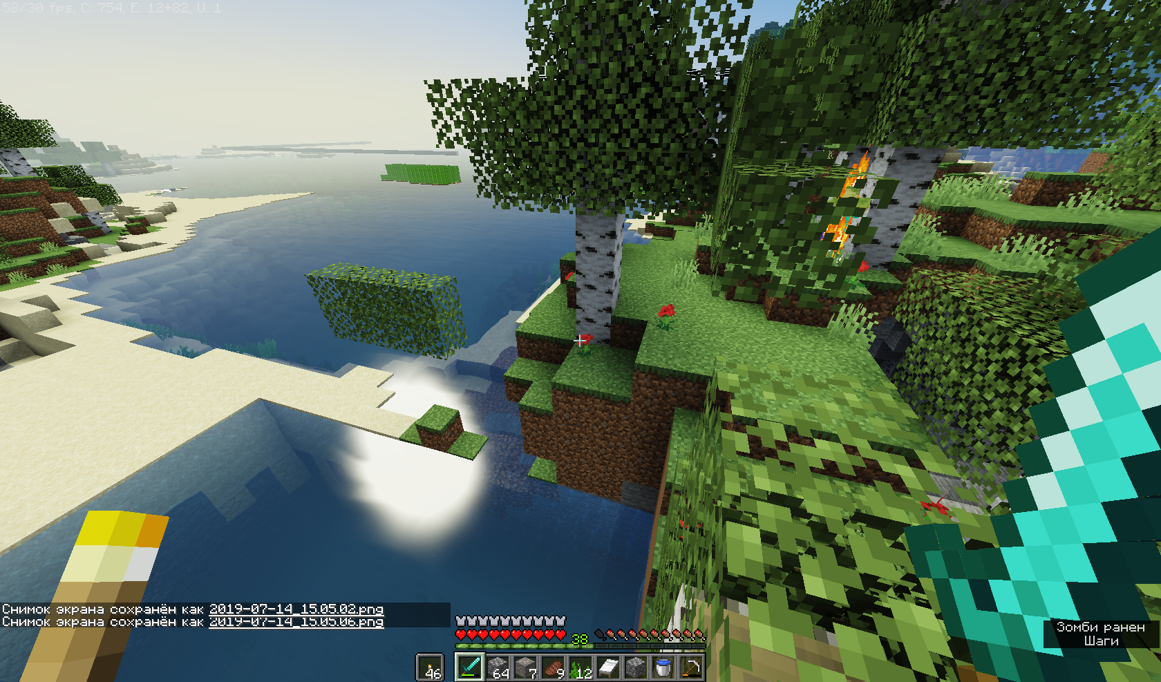 Once I entered my world, and saw how several chunks were moved in places. For example: a chunk (16x16 blocks) above sea level was formed in a small lake, a biome was a forest with several oaks. I will show more details in the screenshots. (Google translator)