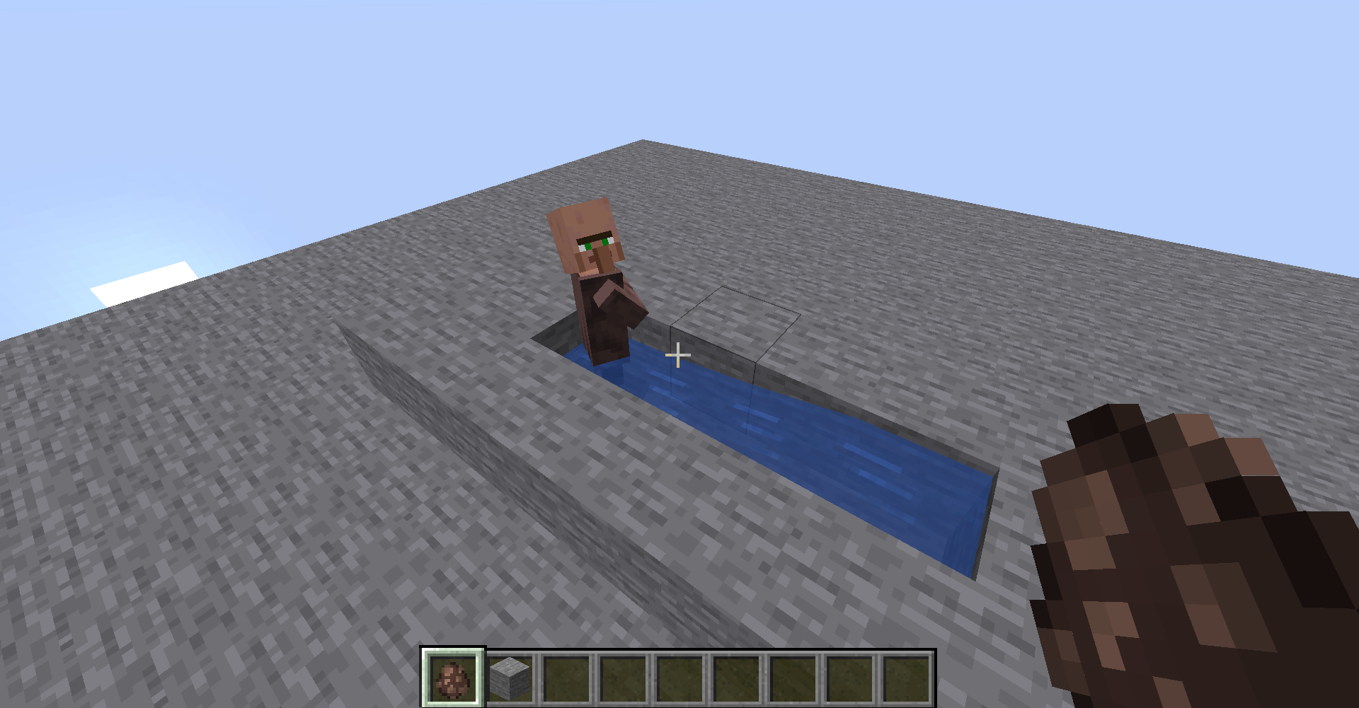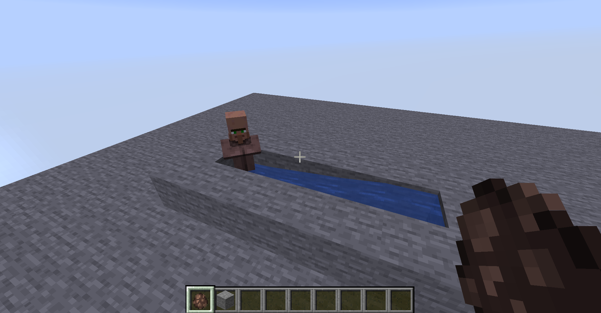 To reproduce, setup a stream as pictured and spawn a mob at the end: