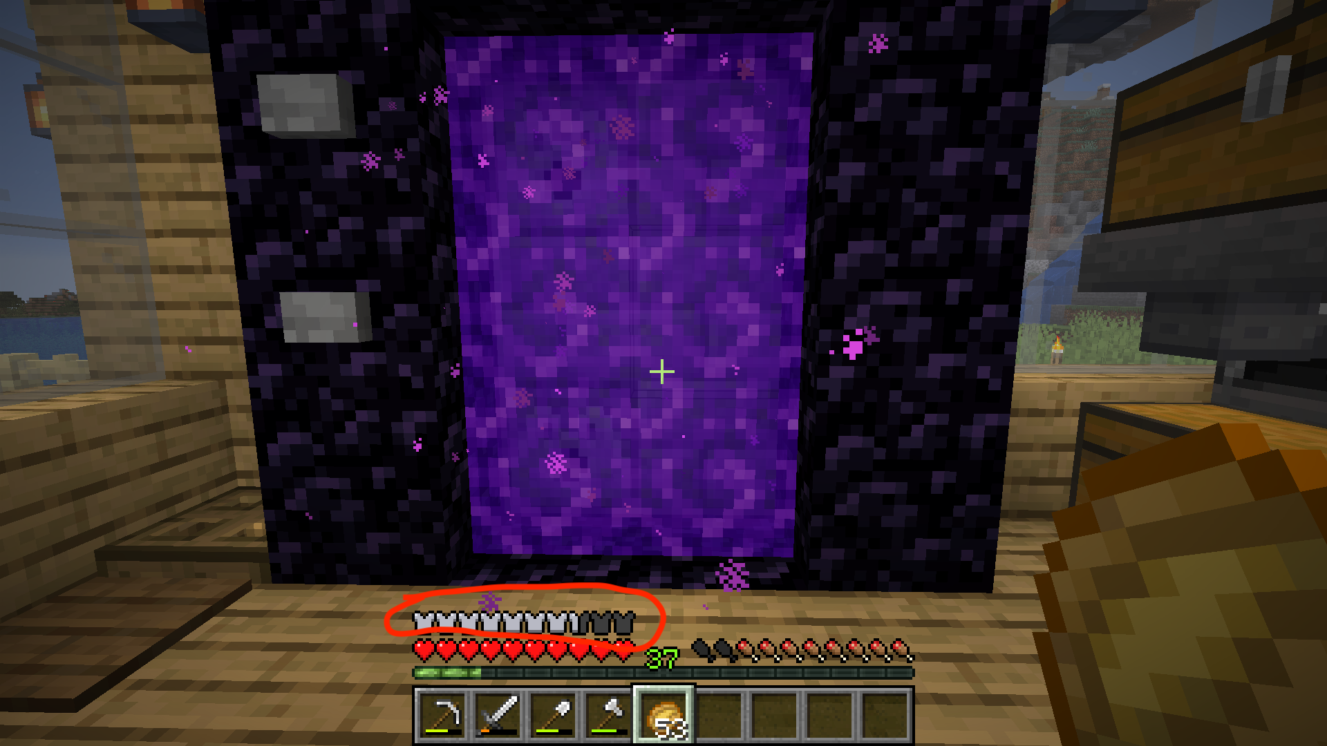 When entering the Nether from the Overworld, my armor bar disappears then reappears when I interact with my armor.