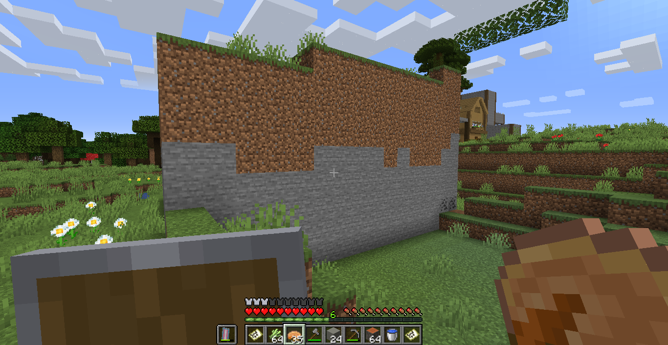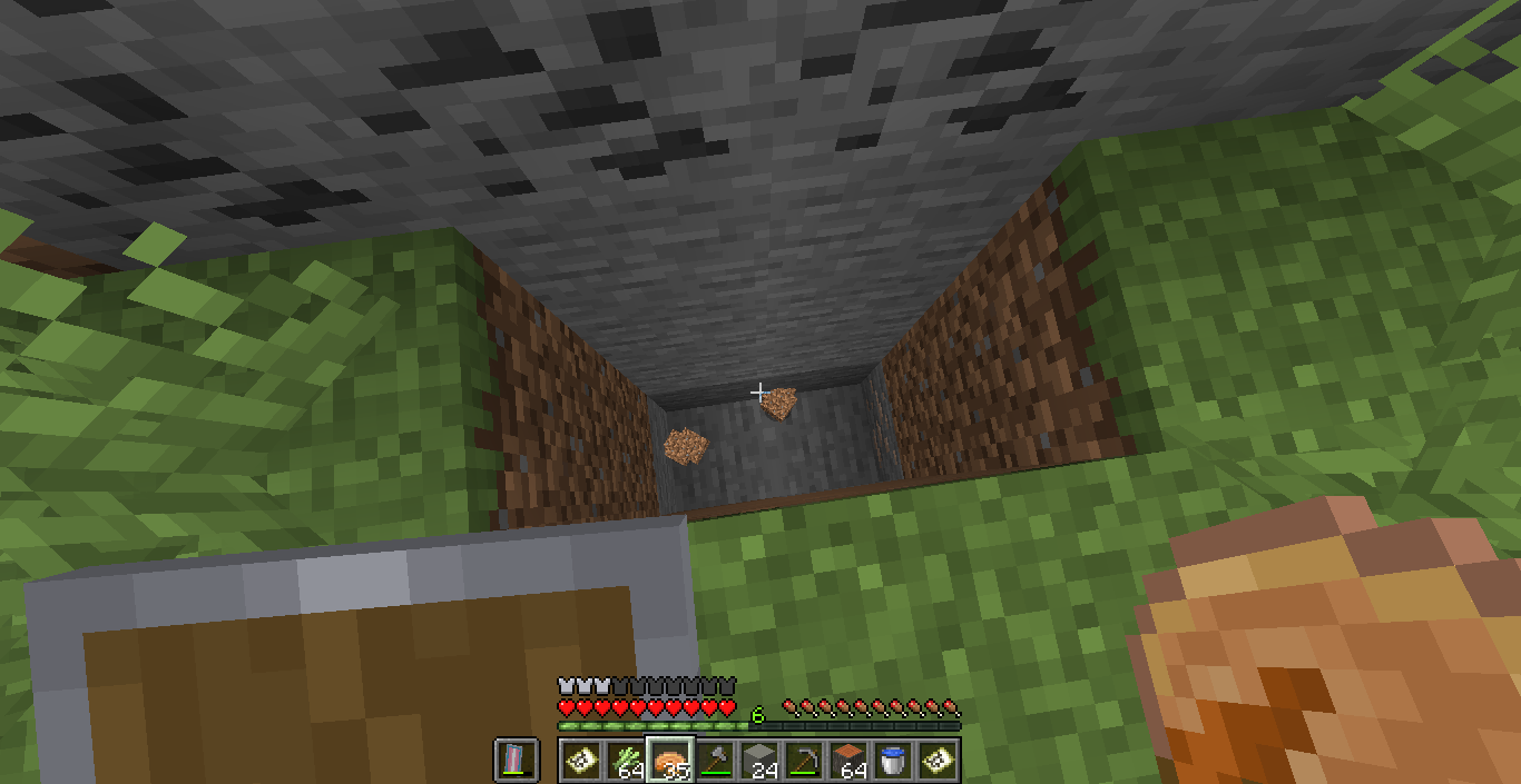 A chunk appeared above the ground, It's not hollow and there's solid ground under the chunk. it also changed the nearest chunk and from the looks of the grass its now a mountain biome or something. I dug under and into it to show that it's not hollow to explain the pictures of holes.