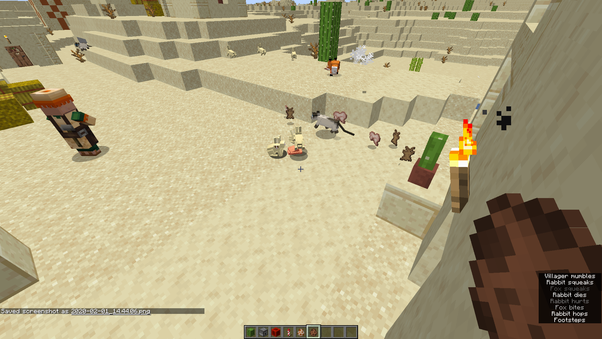 When rabbits are hunted down by foxes or cats, they do not display a fleeing behaviour which causes them to be easily killed. They only display a panicking behaviour when hit by the fox/rabbit which happens to the rabbit when taking any sort of damage. This contradicts the behaviour that rabbits have with other hostile mobs, untamed wolves and players (in survival mode) where they flee.