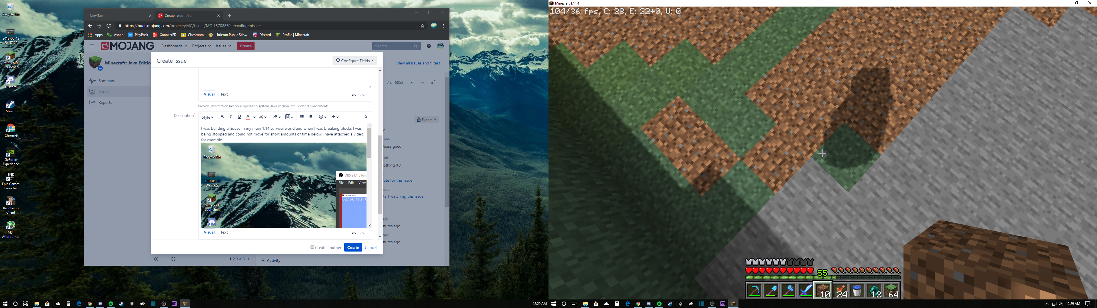 I was building a house in my main 1.14 survival world and when I was breaking blocks I was being stopped and could not move for short amounts of time below i have attached some pictures for example.